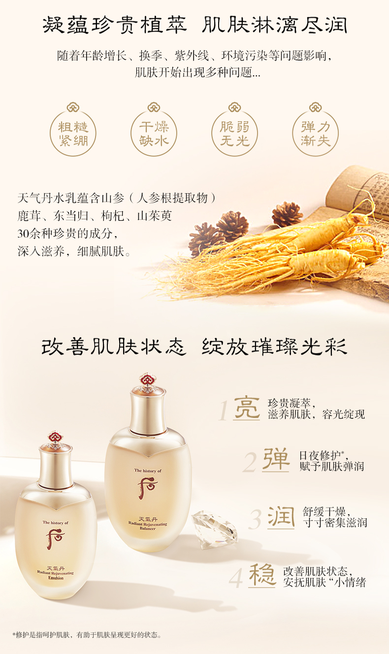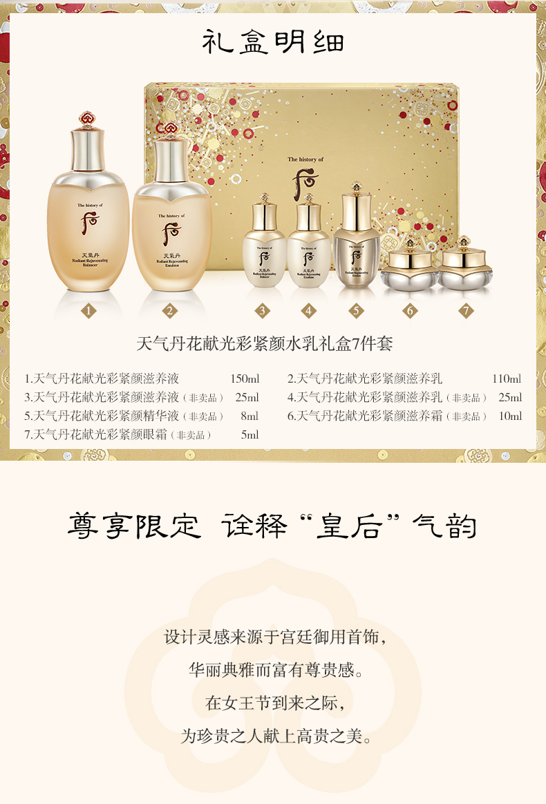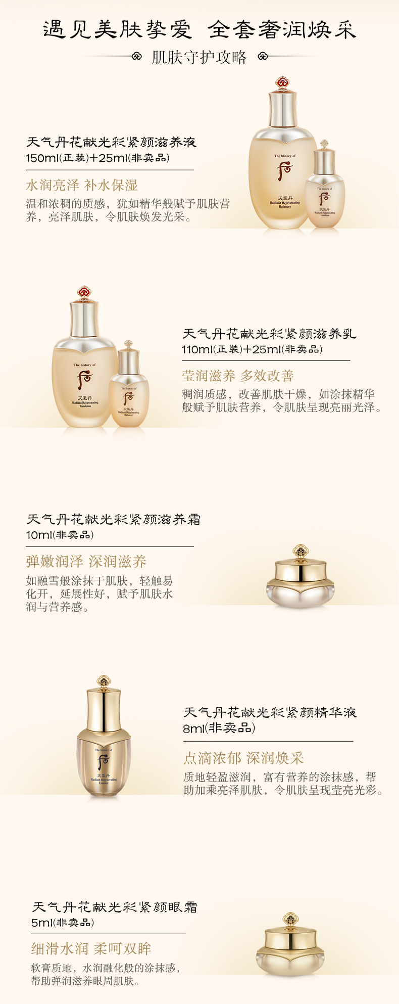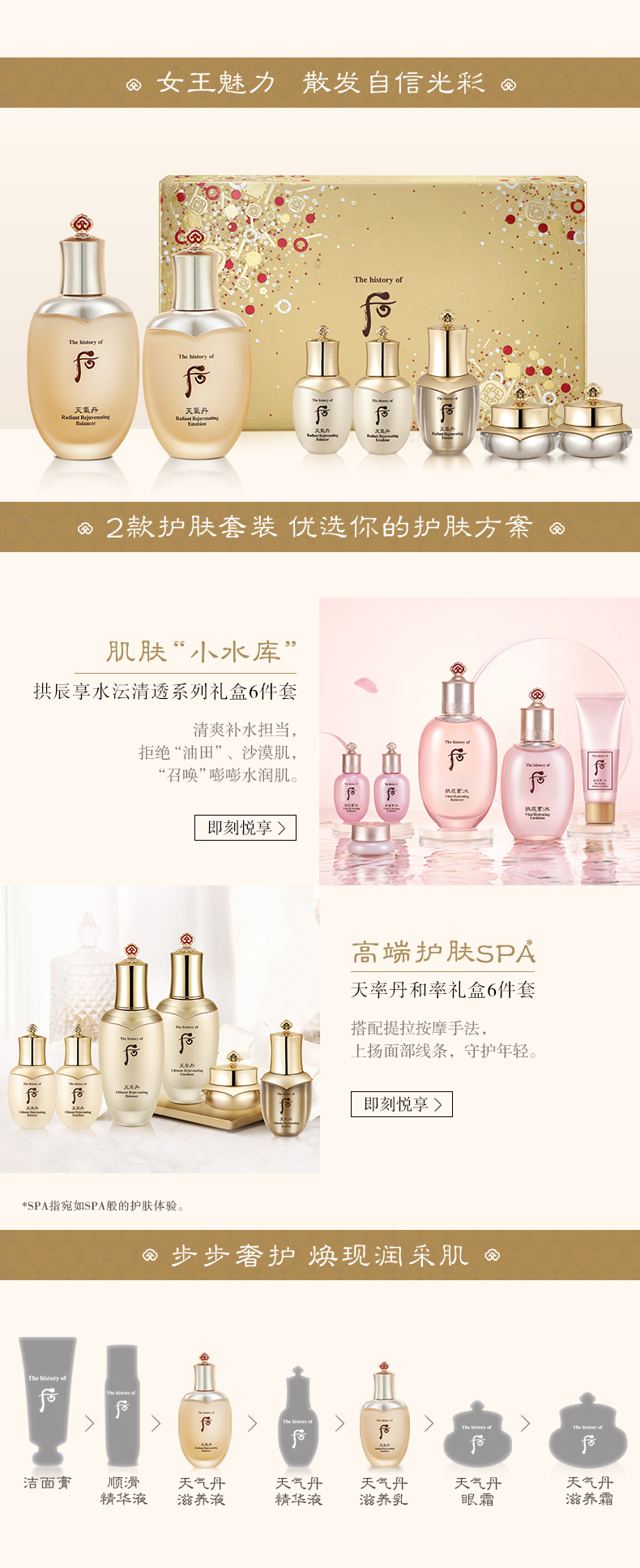 天气丹系列 被誉为后家“顶级系列”,有着最牛的广告语:“只要你五官没问题,我就能让你一直年轻下去”,被众多明星所推崇,功效几乎全能——综合护理、皮肤再生、抗皱、保湿、弹力、毛孔管理等等。因此适用年龄非常广,不管你是20岁,还是30岁,或者40岁,用它都合适。