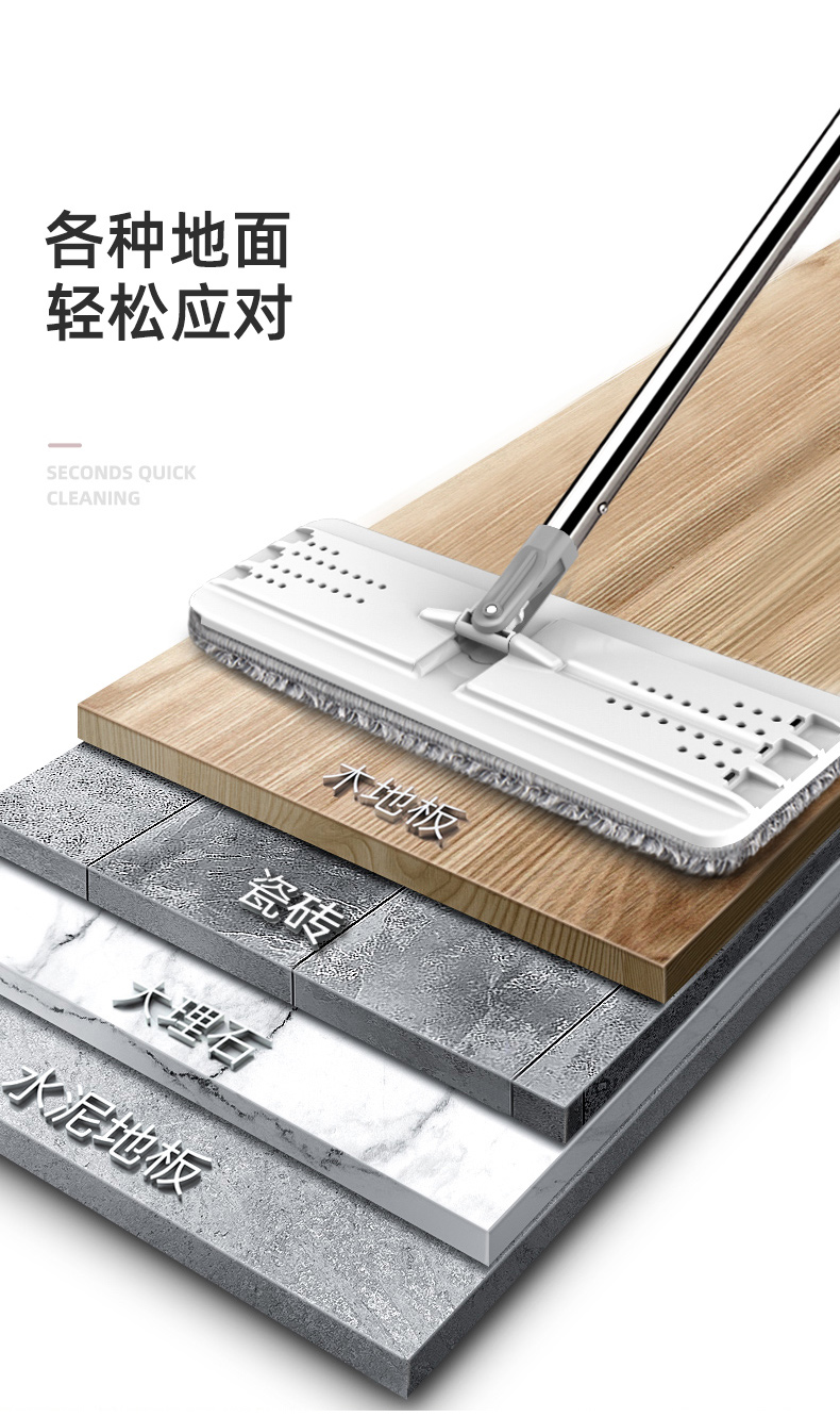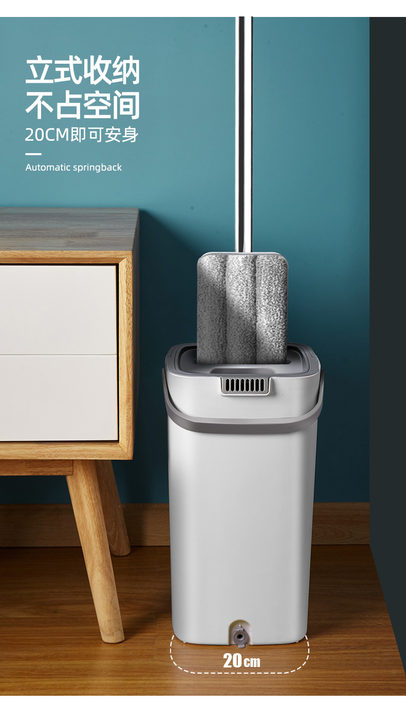 桶盖上有环形挡板,可以防止污水溅出,再也不用小心翼翼地清洗拖把;盖体分离设计,顶盖两侧一键拆卸,方便清洗内壁。高密度纤维拖布,拥有超强吸水能力,无论是油渍、毛发或者灰尘都能轻易吸附,还非常易清洗。