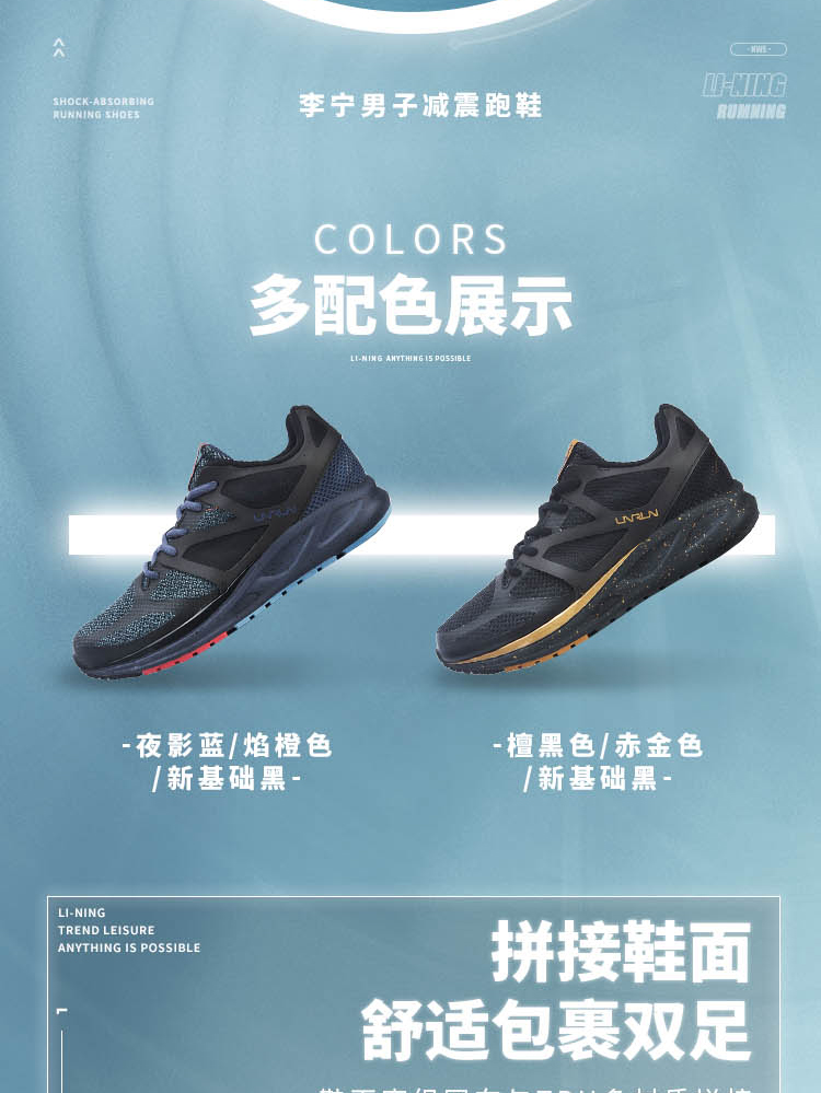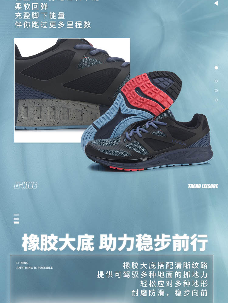 李宁此款运动鞋鞋面由密织网布和TPU多材质拼接打造,亲肤透气,贴合包裹双足,尽享追风之旅前掌脚部分割槽,有效引导跑步轨迹大底镂空设计,功能性提升,同时更为轻量任你迈步飞奔,急速畅跑耐磨橡胶大底搭载纹路,抓地力提升放肆型走每一步。