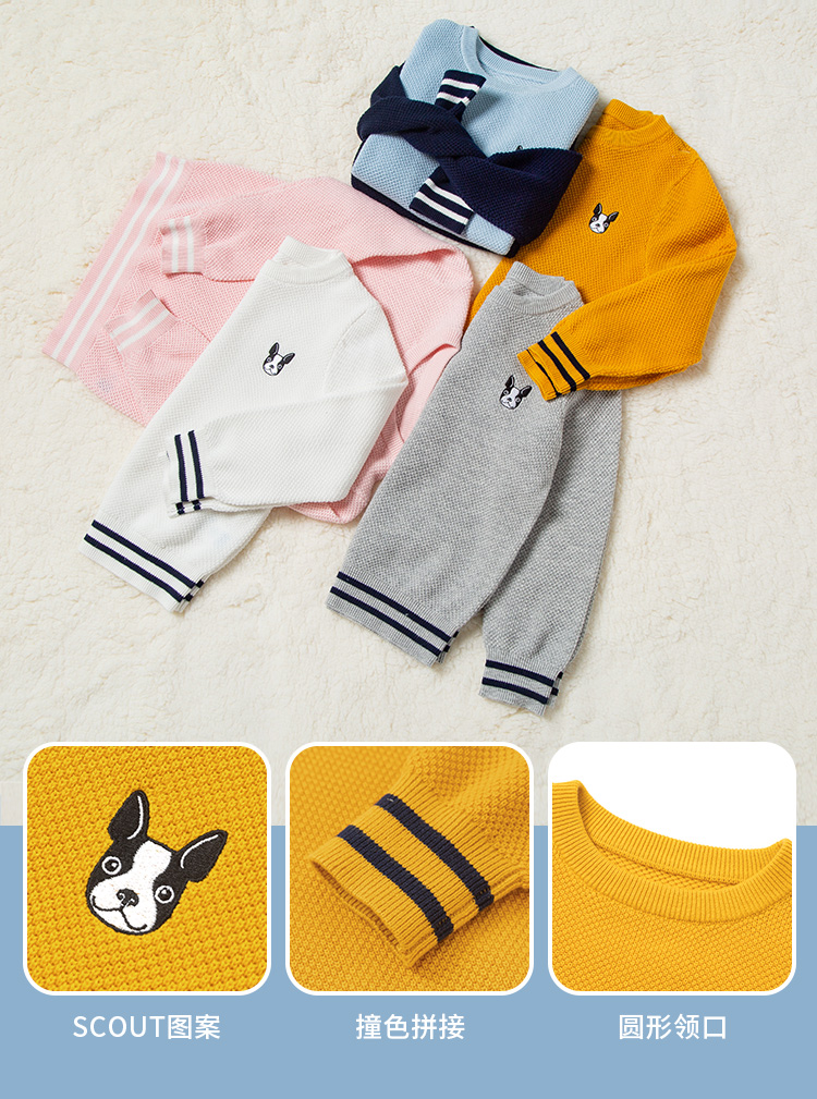 100~160码全,男、女童多色可选。 The Children's Place 2021秋冬新款菠萝针织面料圆领毛衣,优质纯棉针织面料,亲肤舒适,柔软菠萝针织法,袖口撞色拼接,清新俏皮,胸前精致的绣花,甜美可爱。领券链接点此