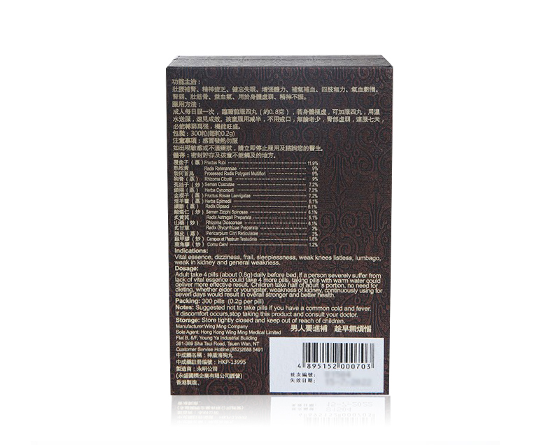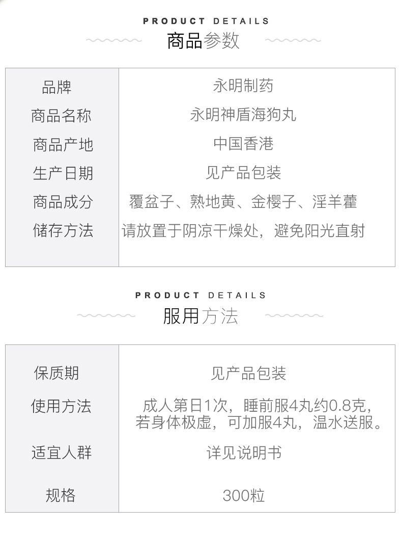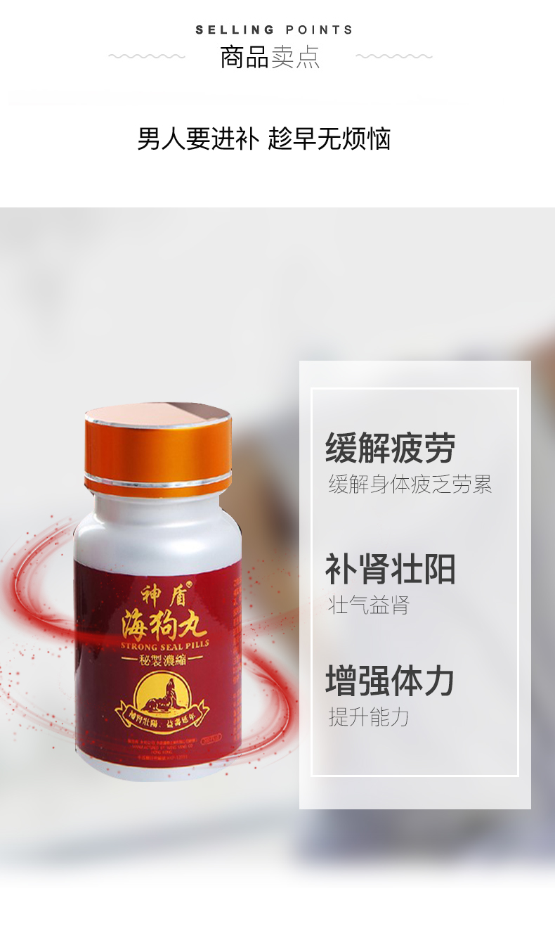 这款神盾海狗丸由香港老字号,永明制药生产,具有正规的中成药注册编号,优选覆盆子、熟地黄、金樱子、淫羊藿等中药,科学配比,功能主:治壮腰补,肾精神疲乏,健忘眠失,增强体力,气补补血,四无肢力,气血亏损肾,弱,壮骨筋,益血,气用于身体弱虚,精神振不!