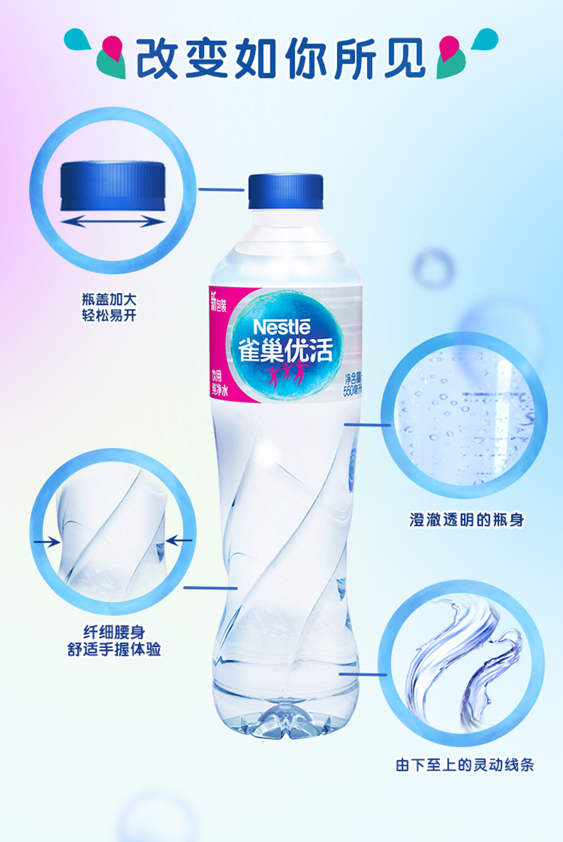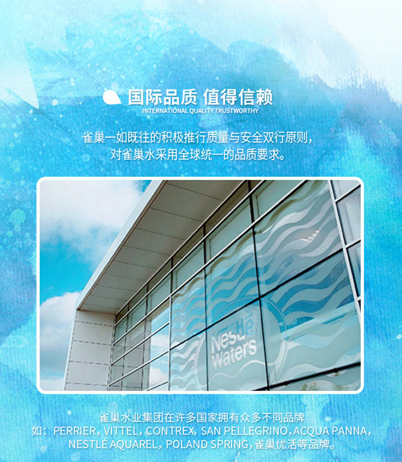 雀巢优活(Nestlé Pure Life)是雀巢水业集团的核心品牌。在世界瓶装水市场中高居榜首地位。生产过程的严格监控、执行严格卫生条件,确保水质从水源灌装到运输销售的全程高品质。领券链接点此