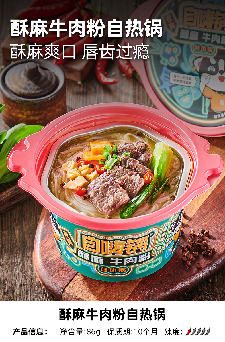 口味:嗦哈酸辣粉自热锅酥麻牛肉粉自热锅川味麻辣烫自热锅蒜香花蛤粉丝自热锅真香咖喱牛肉丸粉自热锅有料螺蛳粉自热锅大块鸭血粉热干面