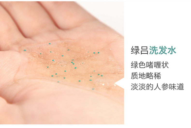 绿吕含有海藻、松叶、发酵薄荷等自然植物萃取成分,可有效清洁过多油脂及老废角质,令头皮达到水油平衡的状态。特别添加由绿茶水、莲花成分制成的绿色按摩微粒,可达到温和按摩的功效,提供更加洁净舒爽的使用感受。