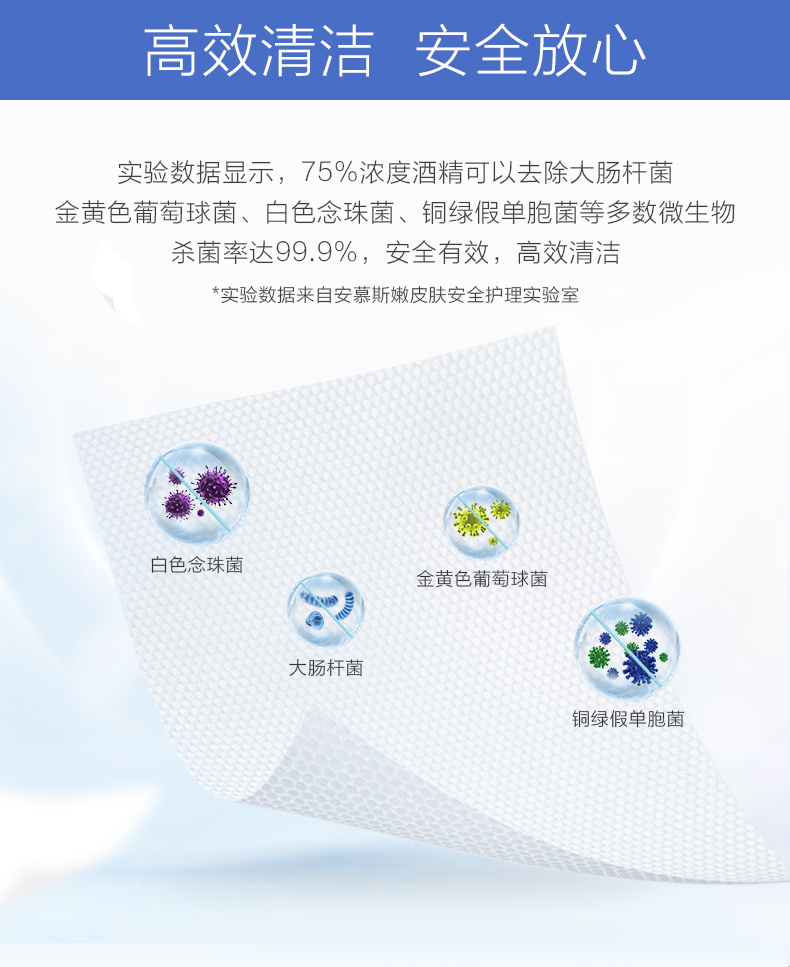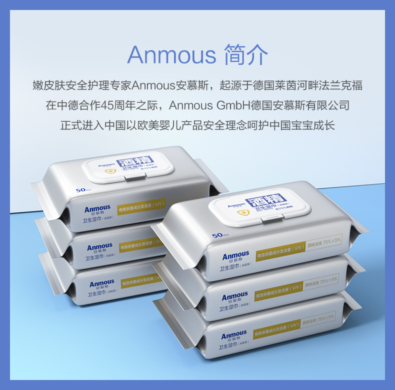 这款安慕斯Anmous加厚消毒湿巾,含75%酒精,可杀灭常见感染细菌病毒。采用3.2倍超高含液配比,液体充足,清洁面积更大,使用手感和杀菌效果兼得。
