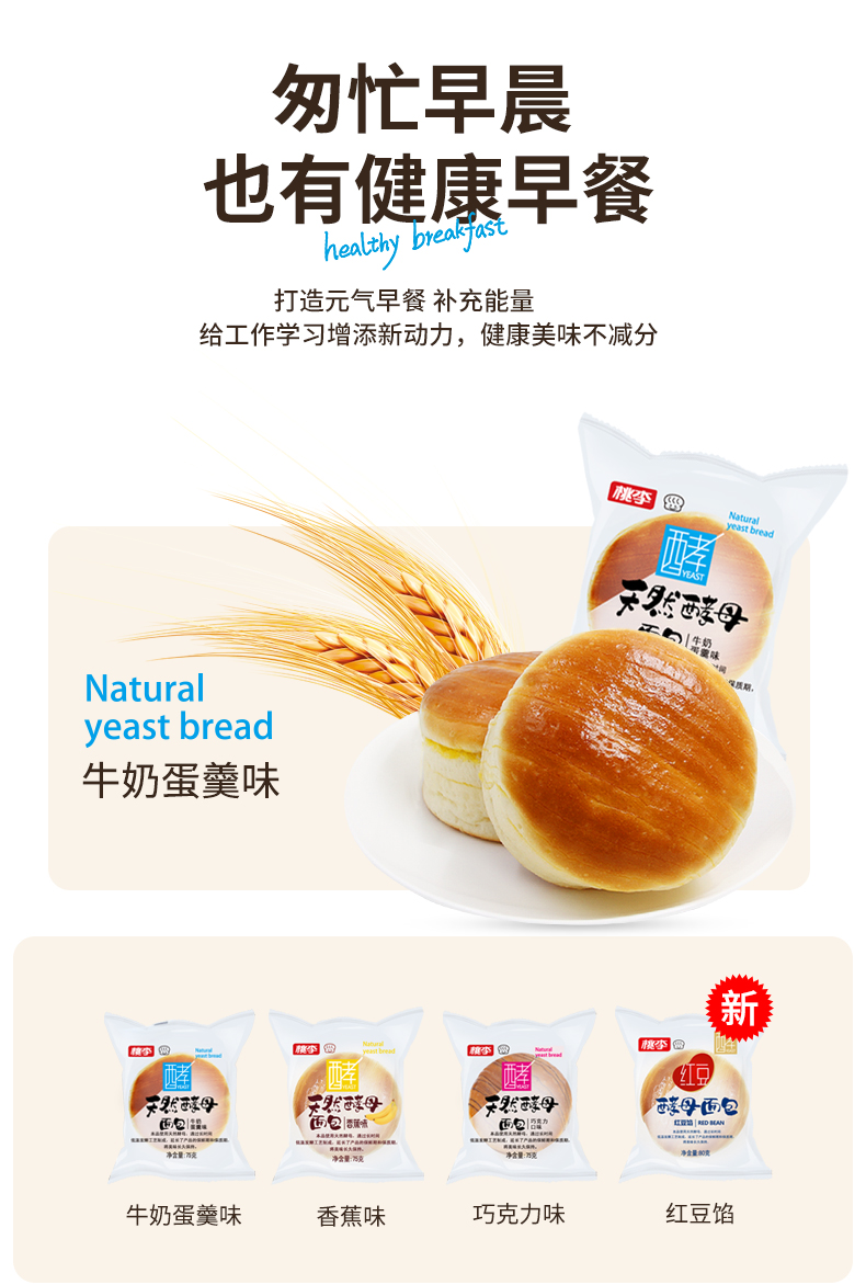 这款桃李 天然酵母面包,使用天然酵母,通过长时间低温发酵而成,延长了保鲜期和保质期(45天),蛋奶醇香浓郁,绵软潮润可口。