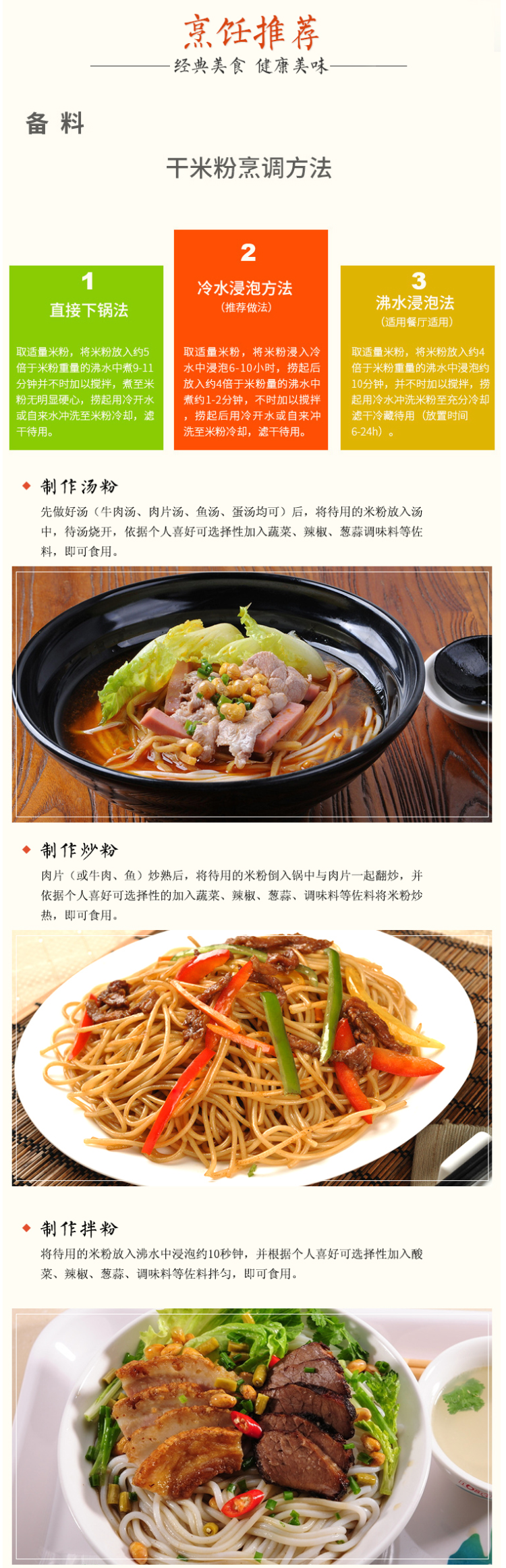 米粉香气浓郁,晶莹顺滑,气味清香,粗细均匀富有弹性,煮后不糊不断,口感柔韧爽滑,富有弹性。