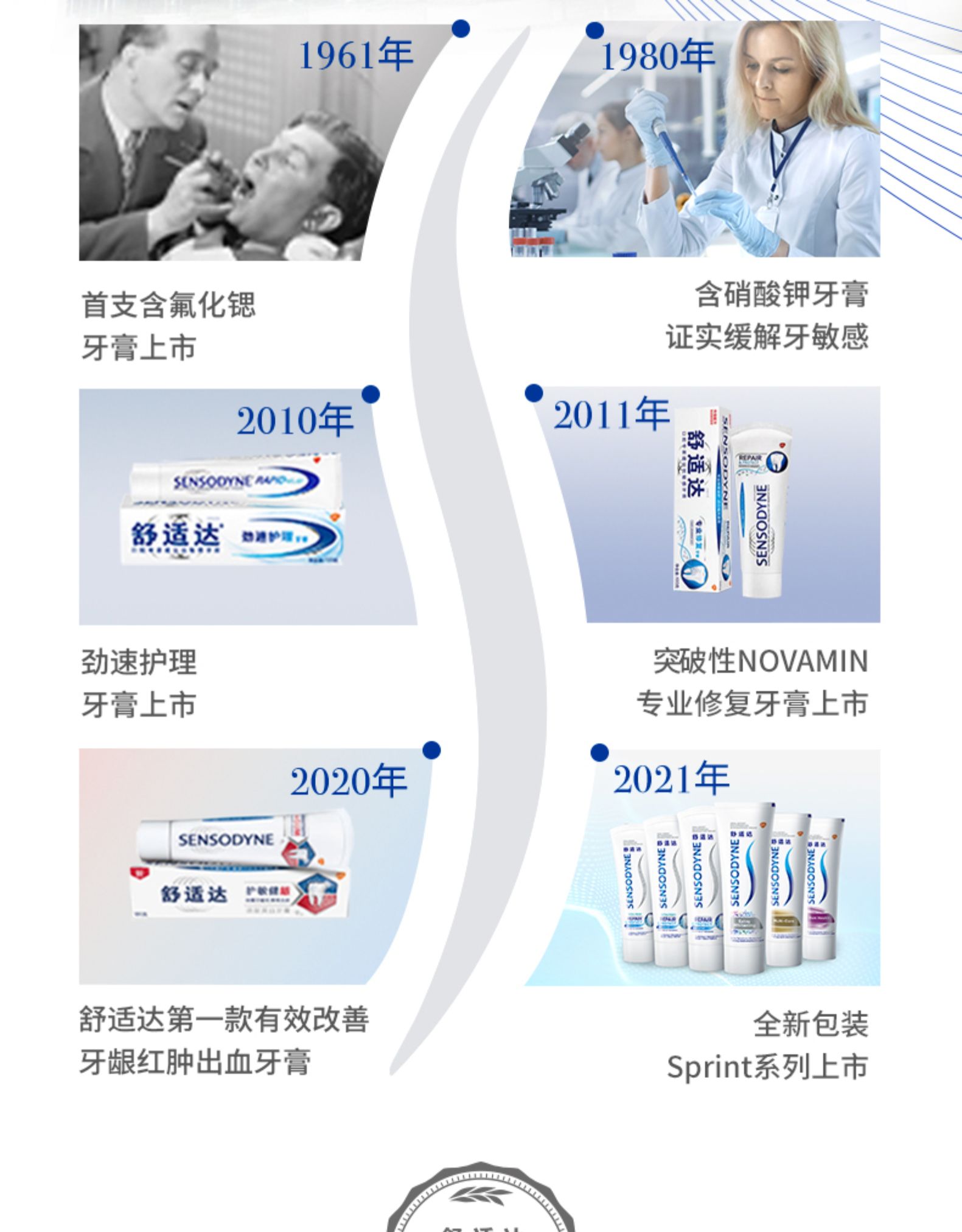 葛兰素史克旗下品牌SENSODYNE舒适达的牙膏有口皆碑,是专业的抗敏感牙膏品牌,受到很多牙医的推崇。这款舒适达专业修复牙膏,采用NovaMin®专利科技,遇到唾液能释放出钙和磷酸盐,在牙本质上形成修复层,有益于修复敏感牙齿受损部位,帮助预防牙齿敏感疼痛 。