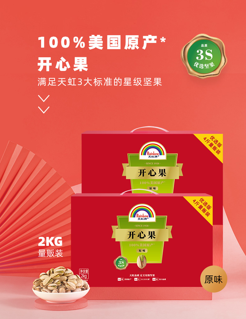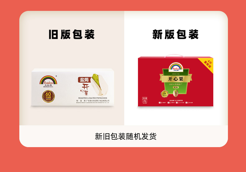 60年传承老牌, 原料美国加州/伊朗直采,精选颗粒饱满,天然无添加,精心烘培,口感香醇咸脆,营养丰富。