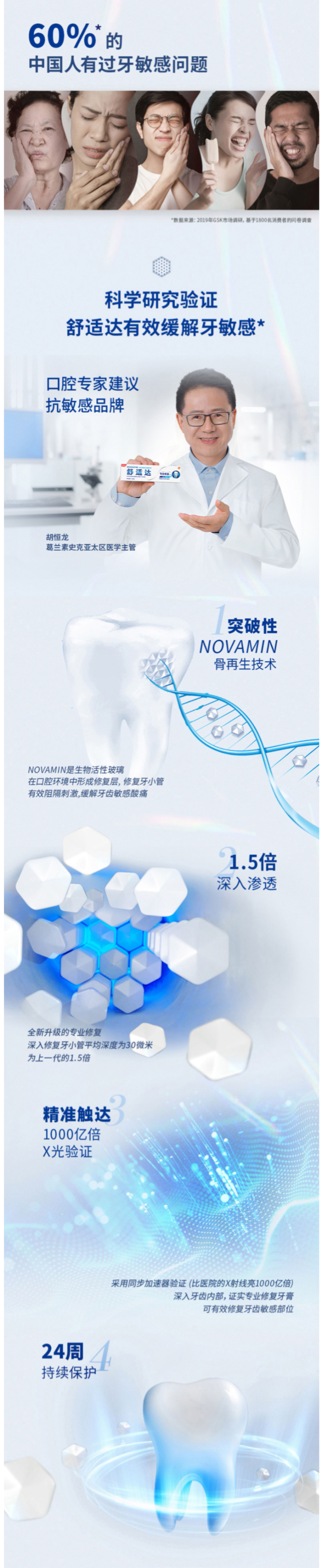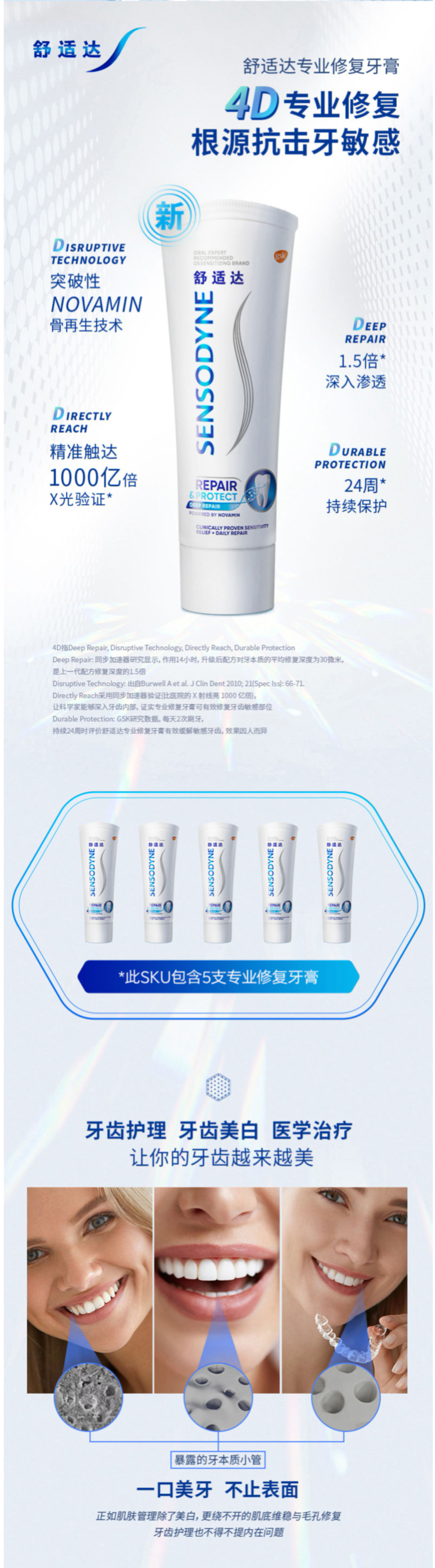 舒适达最贵最有效的抗敏感牙膏,专业修复款,突破性Novamin技术,修复牙本质小洞,从根本上解决牙齿敏感,适合牙齿敏感者日常使用。
