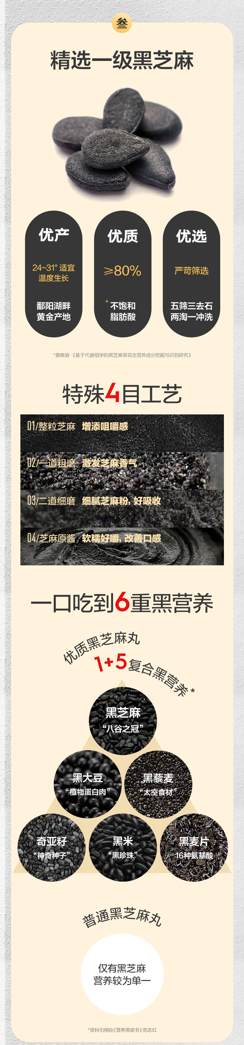这款五谷磨房 纯手工制黑芝麻丸,精选当季黑芝麻、黑豆、黑藜麦、奇亚籽、黑米、黑麦片等新鲜原材料,经过五筛三去石、两淘一冲洗步骤,严格筛选,特殊四目工艺成品黑芝麻丸口感有嚼劲、绵软充实,柔润细腻,没有添加白砂糖、麦芽糖、甜味剂,只选用了低聚异麦芽糖,保证纯正健康。