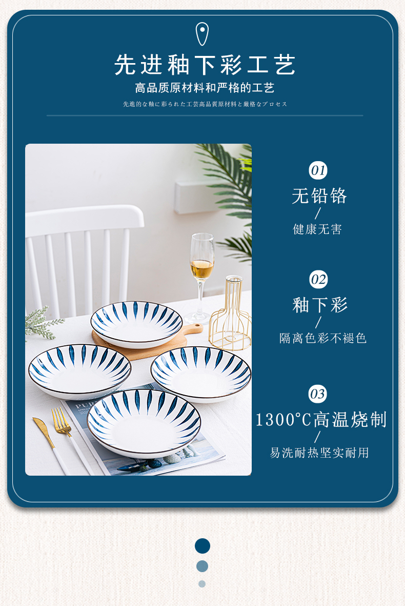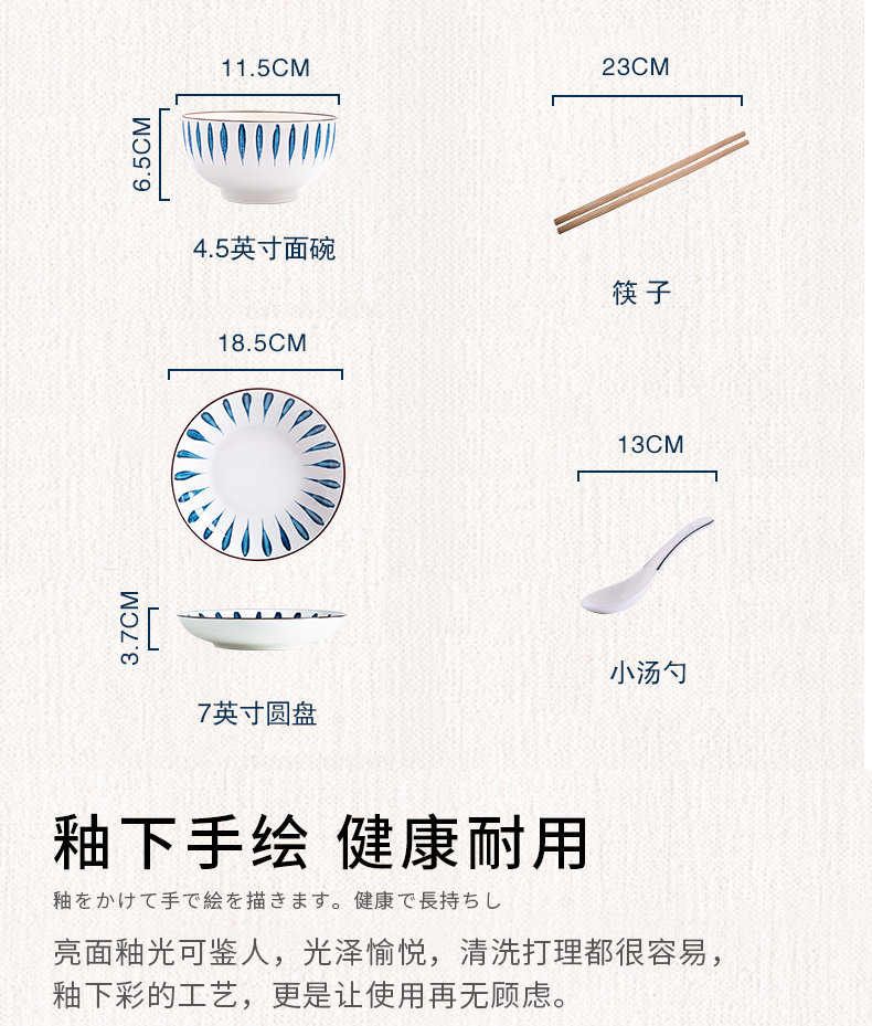 这款虾选日式陶瓷餐具,使用釉下彩工艺,隔绝彩料,表层一层透明釉,食用安全。清晰印花图案,凹凸质感,搭配美食自然清新,外层细腻条纹花纹,呈现立体美感,也能起到防滑作用。