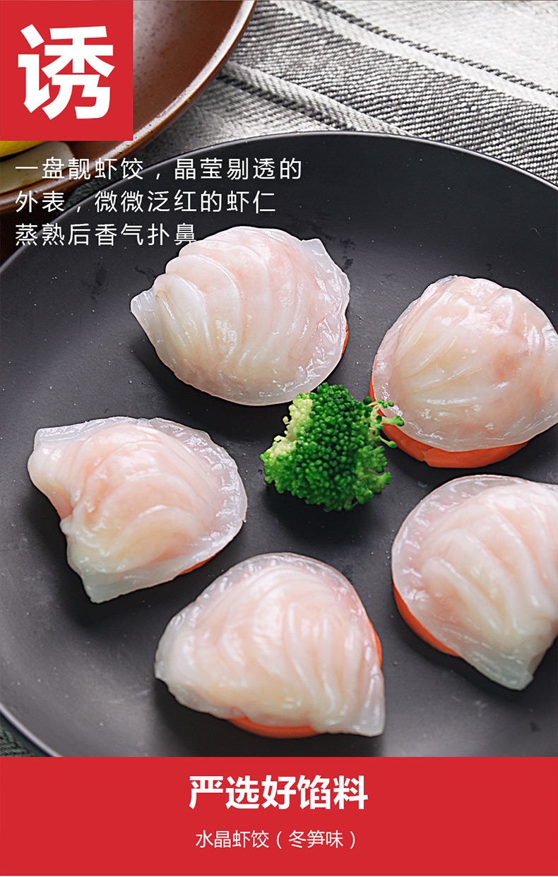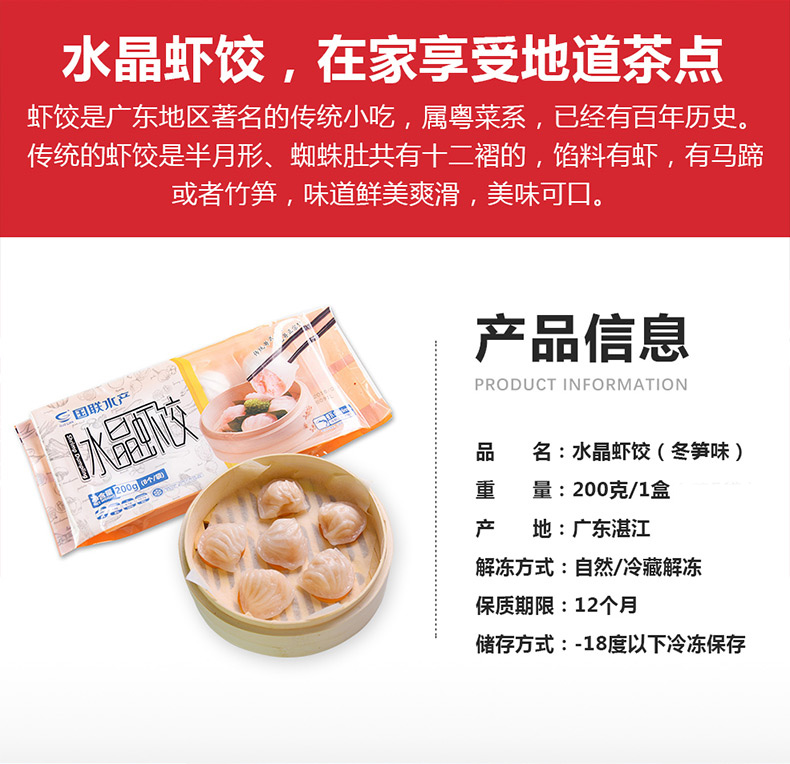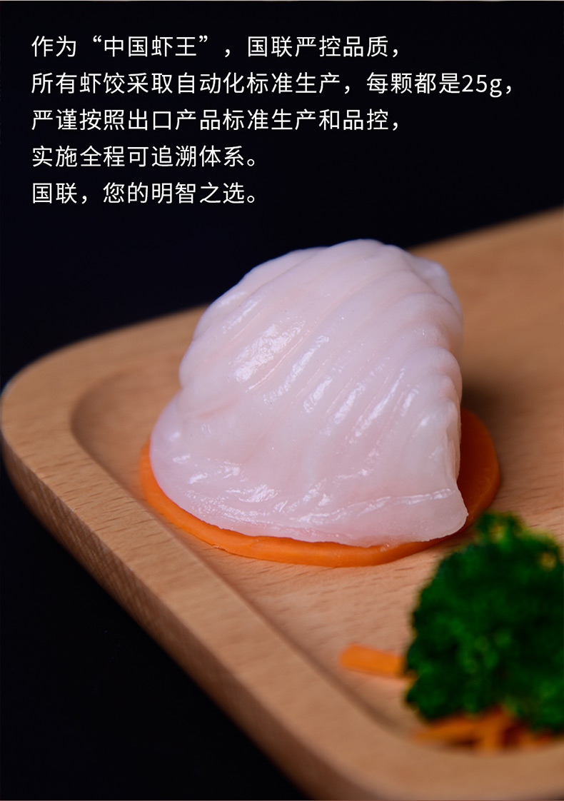 这款 广东港式水晶虾饺皇,上市公司国联水产(股票代码3000)出品,按照出口产品标准生产,实施全程可追溯体系,品质有保障。严选南美整只白对虾仁,新鲜冬笋和优质澄粉制作,饺皮晶莹剔透,皮薄软韧,可清晰看见内里封堵的馅料,味道鲜美爽滑。
