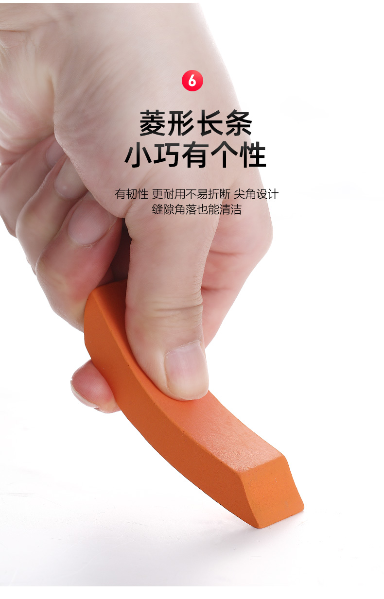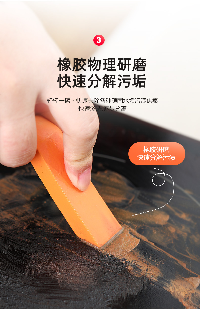 厨房必备清洁神器。 甄选优良天然橡胶和合成材质,日本制作工艺制成,去污力强,不易断,经久耐用,采用物理去污原理,使用方便简单,沾水即可使用,轻松擦拭烧灼、污垢、顽固水垢污渍焦痕等,快速渗透,逐步分离,去污不伤物,清洁一冲即干净,可重复使用。尺寸8×2.2×1.1cm领券链接点此