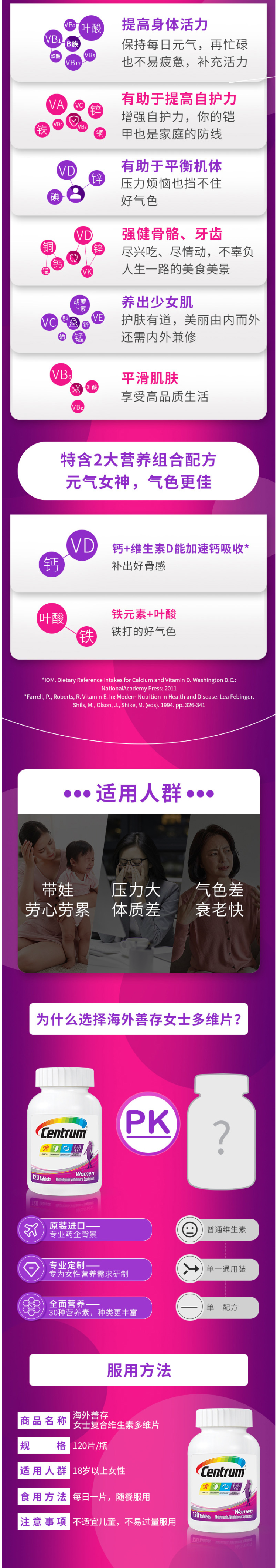 复合维生素,科学补充多种营养,其中“叶酸+铁”可以预防贫血,“维生素A+铁”可以滋润肌肤提气色,“维生素C”促进胶原蛋白合成。