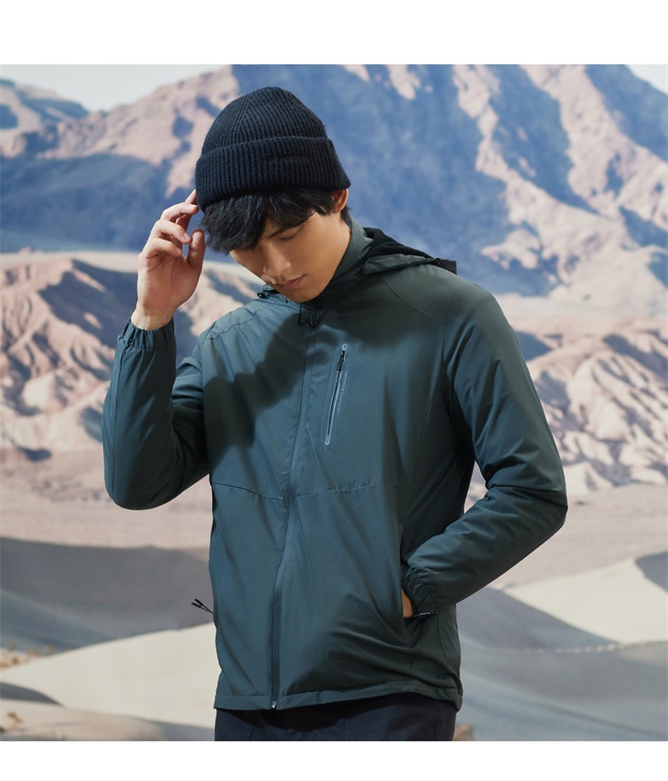 这种防风保暖夹克,中等厚度,本质就是将风衣和抓绒衣做成一体,重量轻便,轻暖比高,适合天气还没那么冷,不需要穿羽绒服的时候穿着。