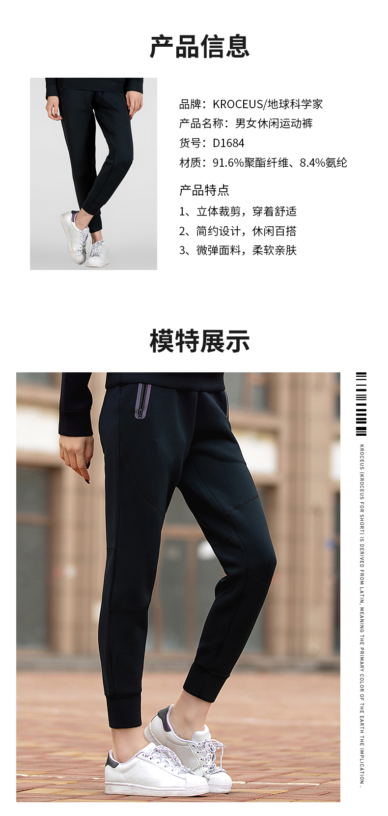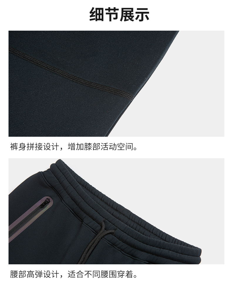 在款式上,经典运动版型,能很好的修饰腿型,可以拉长视觉效果,显瘦显长。3D立体剪裁,符合人体工程学设计,无论是蹲、坐或其他腿部活动,都可以为膝部留有足够的活动空间,上身活动自如。