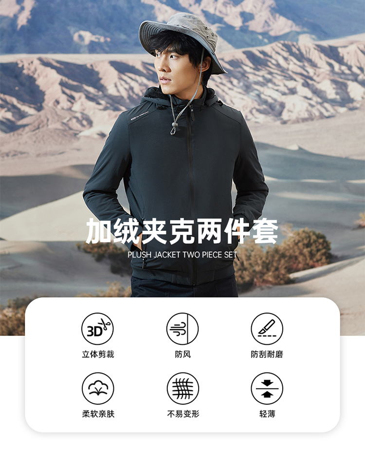 海澜之家这款是防风保暖夹克,使用近两年流行的复合面料,外层的是90%尼龙混10%氨纶弹力纤维,带弹力的高密度防风面料,防风的同时也防泼水;里面是非常后的抓绒,保暖效果好,里外两层结构紧密交织在一起。