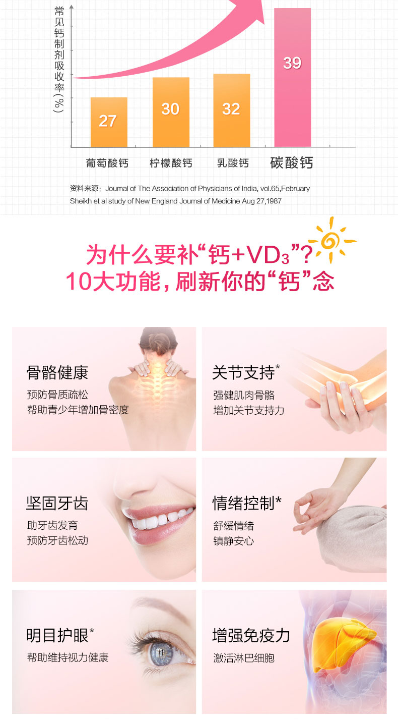 美国进口,女士钙尔奇VD+钙,特别添加了维生素D3,维生素D能参与钙和磷的代谢,促进其吸收并对骨质形成有重要作用,效果更好。每片含碳酸钙1.5克(相当于钙600毫克),维生素D3 800国际单位。含钙量是普通钙片的2倍,从含量和吸收两方面提升品质,改善骨质疏松,规格:120粒装,,每天1颗,轻松补钙~