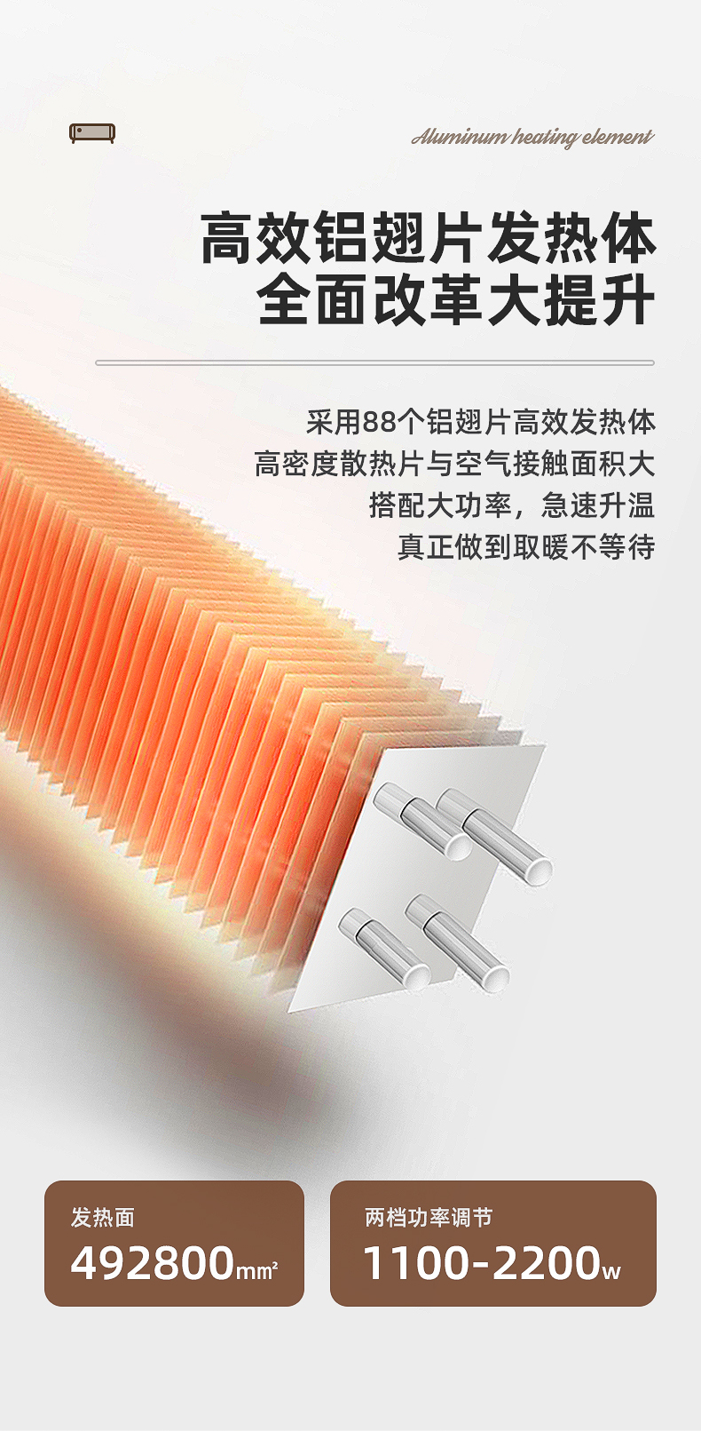 2200w大功率整屋升温,柔暖速热不干燥。一体式液晶操控面板,叠加远程遥控功能,支持24H长时间定时,睡前定时,不用起夜,使用方便。