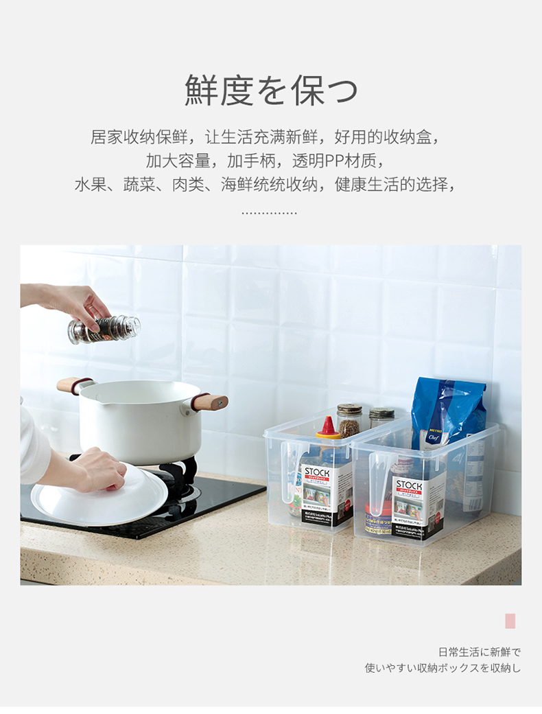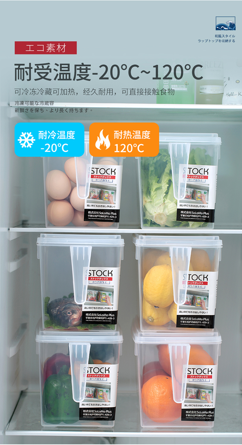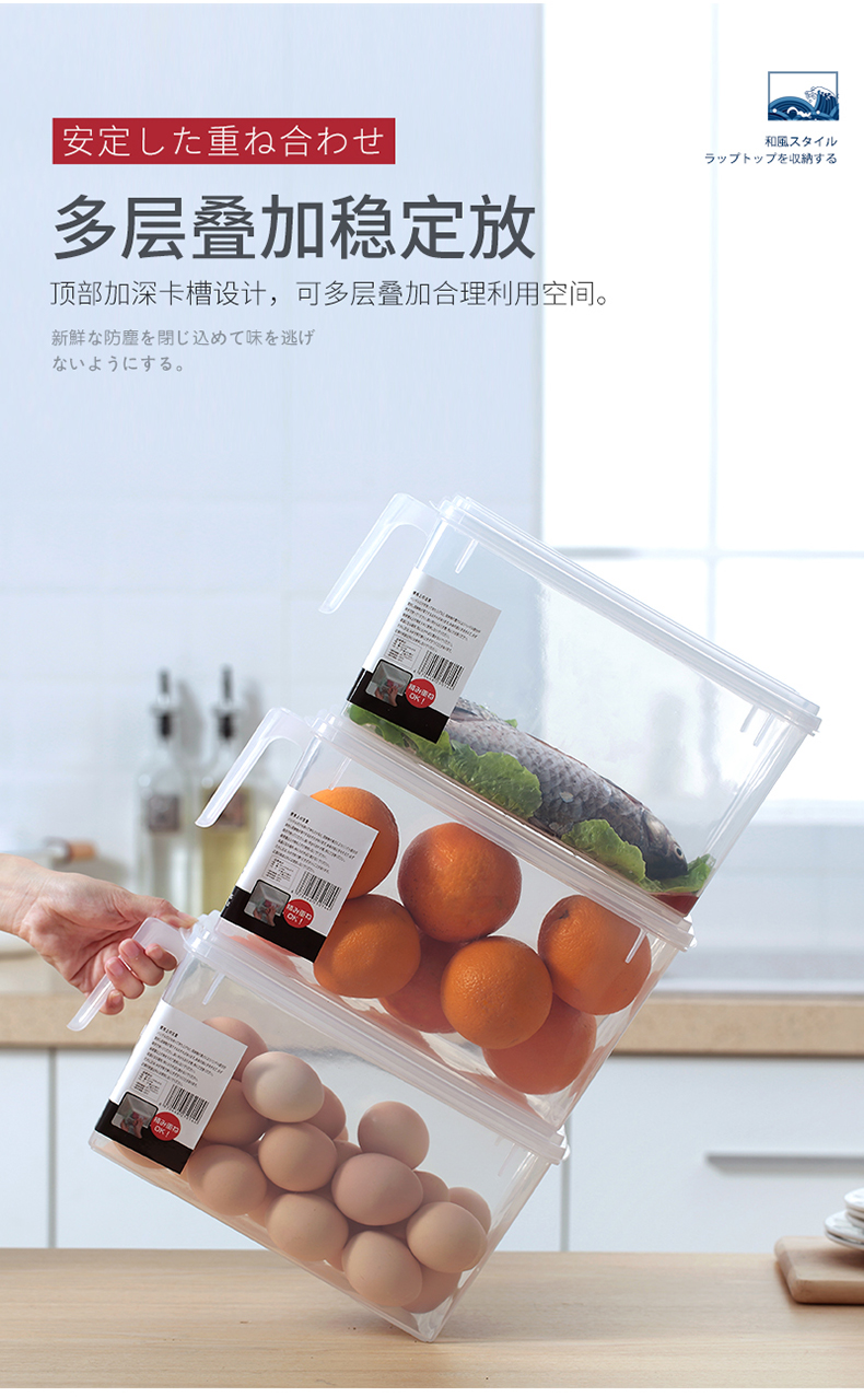 这款聪拓厨房冰箱收纳盒,使用食品级透明PP材质制成,耐-20℃~120℃,可以直接接触食物,能存放水果、蔬菜和肉类,抽屉式把手易于拿取,自带盖子不会导致食物串味。