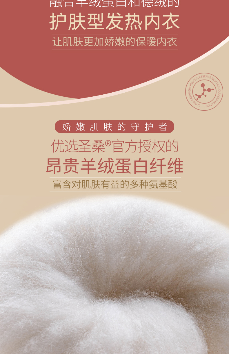 德国拜耳腈纶有称“德绒”发热纤维,可以吸收人体皮肤呼出的湿气并将其转化为热能,实现37度恒温自发热的效果。而腈纶又被称为“人造羊毛”,在舒适度上,要高于棉和莫代尔,仅次于纯羊毛、 蚕丝等高档面料,拥有羊毛轻盈细腻的特点,穿着不压沉,是理想的贴身衣物面料之一。