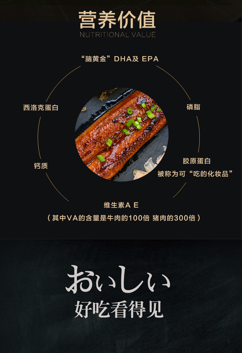 鳗鱼不仅口感极佳,还是全世界稀有的养生补品。鳗鱼富含维生素A和维生素E,远超普通鱼类、牛、猪。可以保护视力和肝脏。还含有大量的钙质,可以预防骨质疏,鳗鱼的皮、肉含有丰富的胶原蛋白,可以养颜美容,被称之为“可吃的化妆品”。