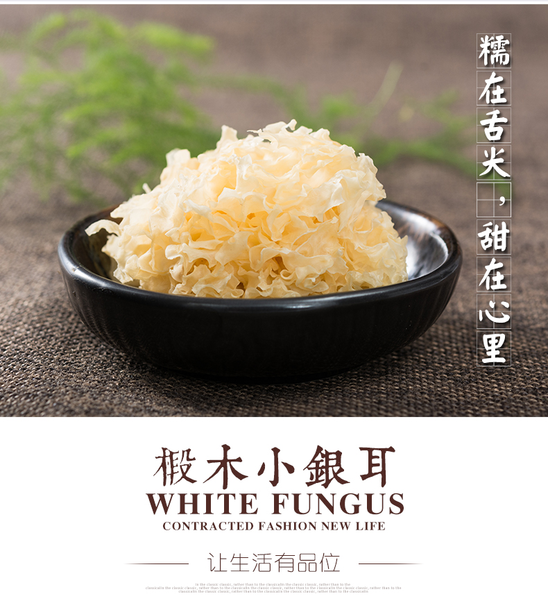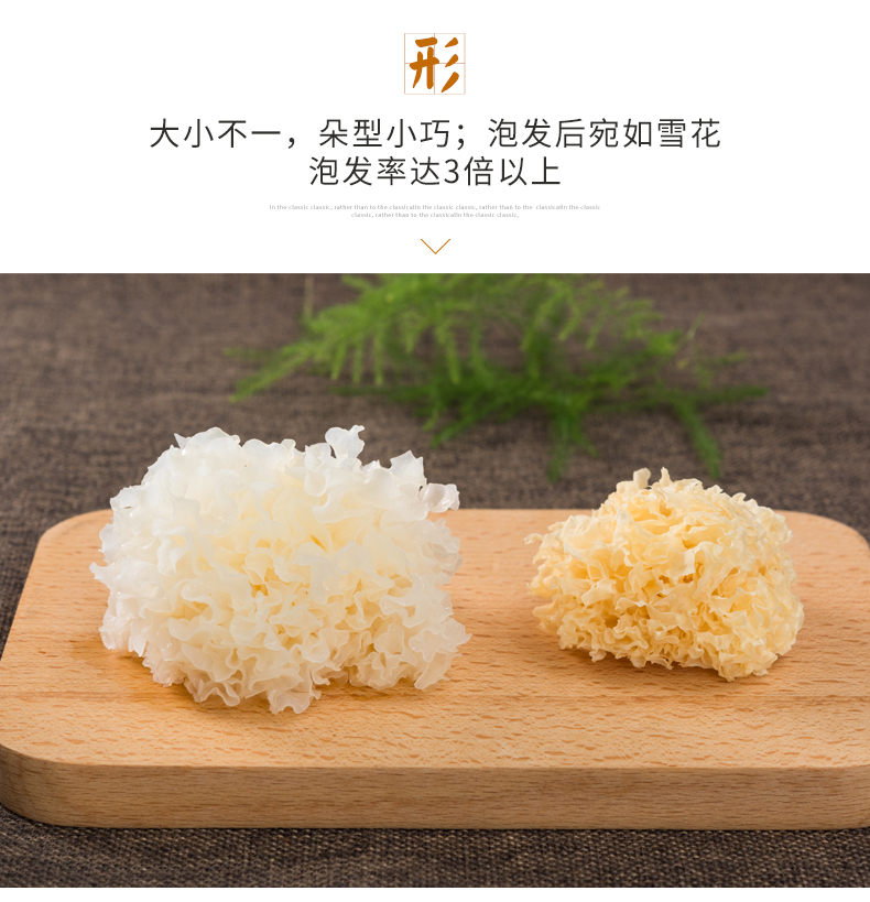 这款菌益 椴木小银耳,椴木生长,一年只能采摘一季,无熏硫、无漂纯原生态,易泡发、易煮、易出胶。色泽呈现微黄自然,泡发后洁白无瑕,晶莹剔透,胶质浓稠,入口即化,香滑爽口。