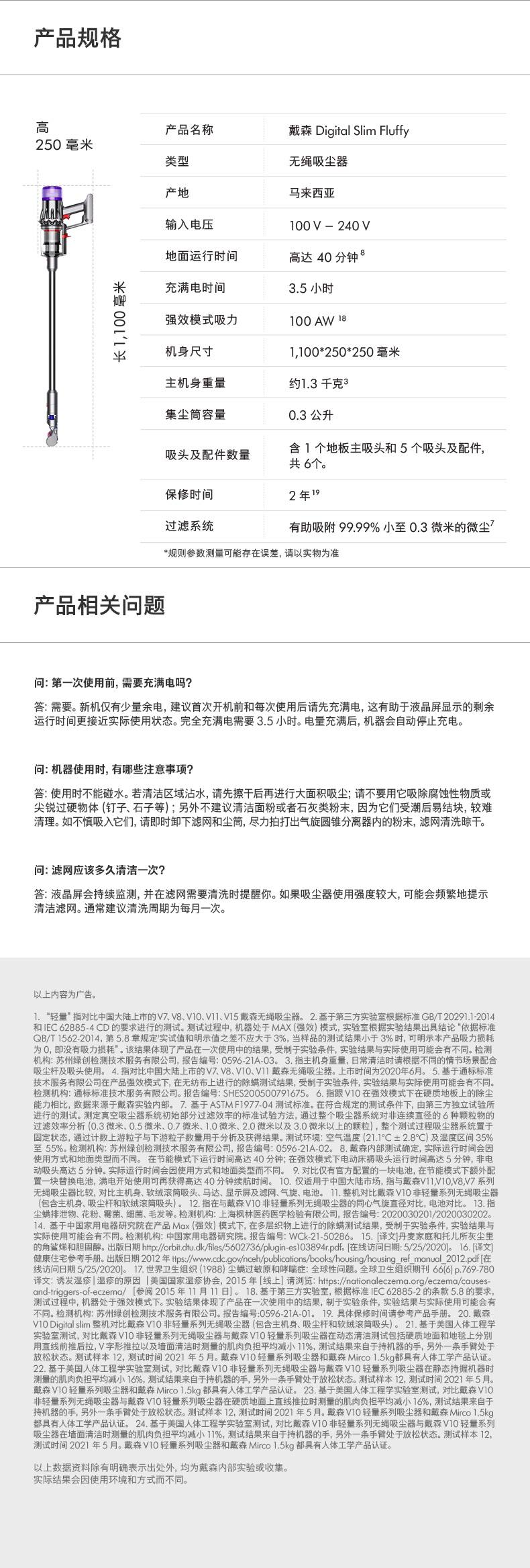 戴森 Digital Slim系列手持无线吸尘器,马达转速12万每分钟,强效模式吸力为100AW,主机1.3kg,较上代减轻30%。