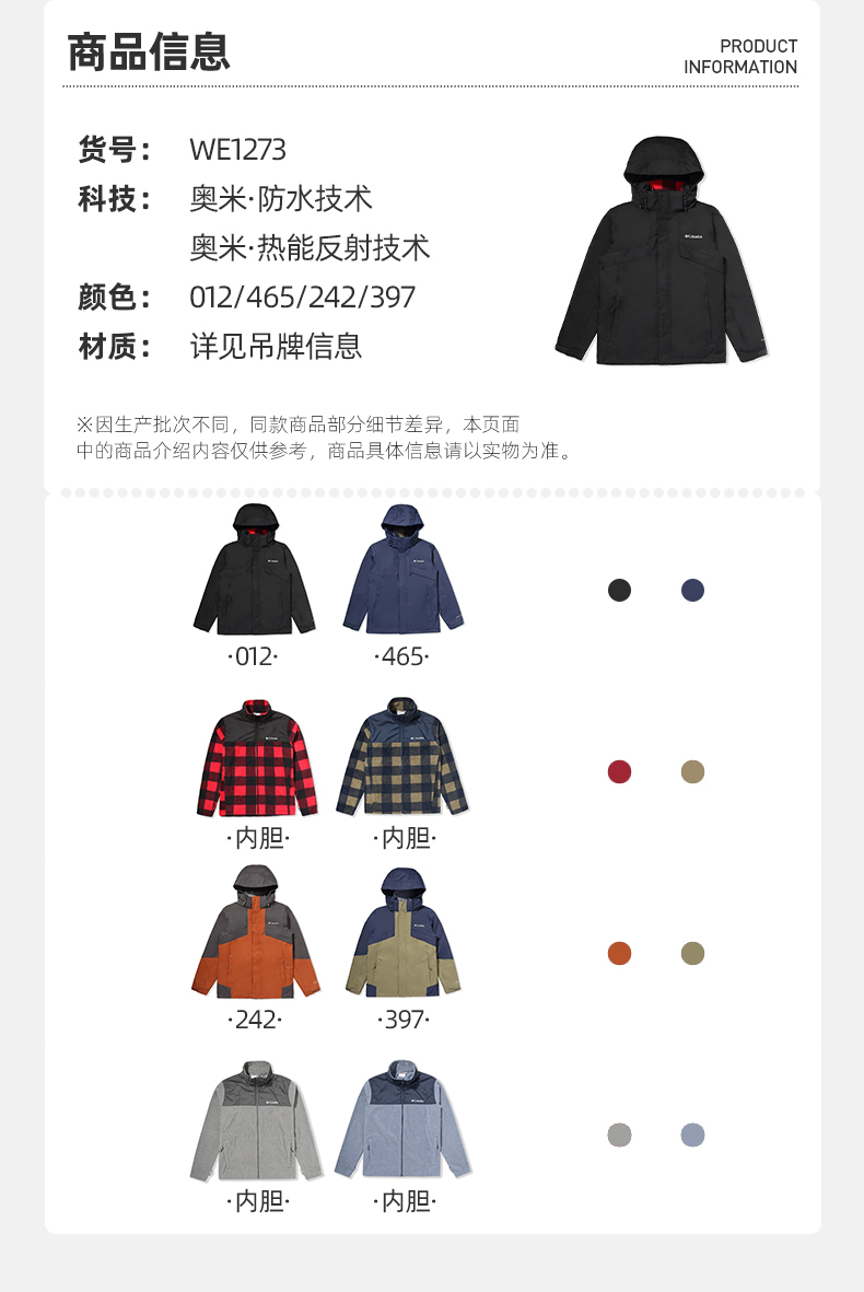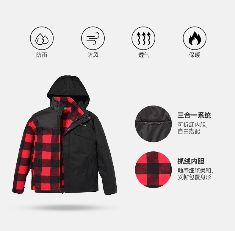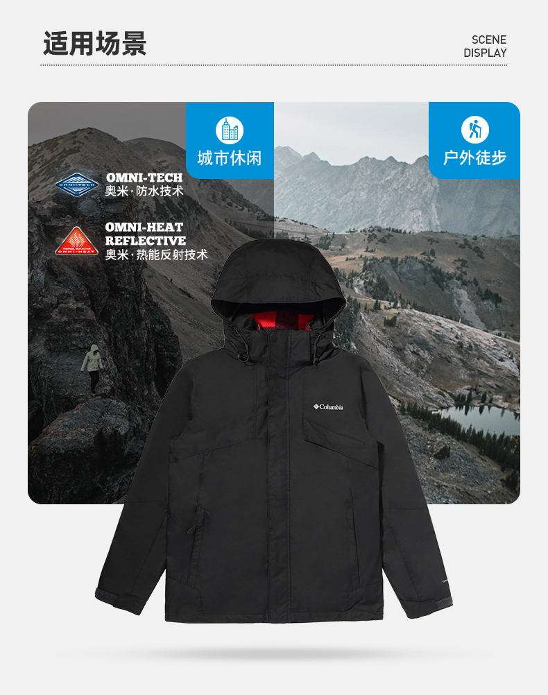 这款哥伦比亚 男热能防水抓绒内胆三合一冲锋衣,是2021年秋冬新款,DWR拒水织物与防水薄膜组合,防止水份渗入的同时帮助排出湿气,适用于多变复杂的户外环境。
