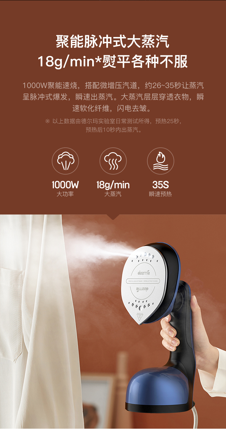 1000W大功率,搭配新型微增压汽道设计,在至短时间内送出源源高温蒸汽,软化纤维、闪电除皱、微动自锁蒸汽双开、点动or自动2种灵活操作,一键切换、满足不同用户习惯。