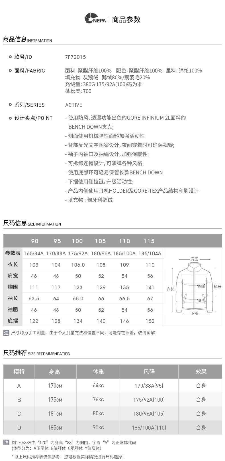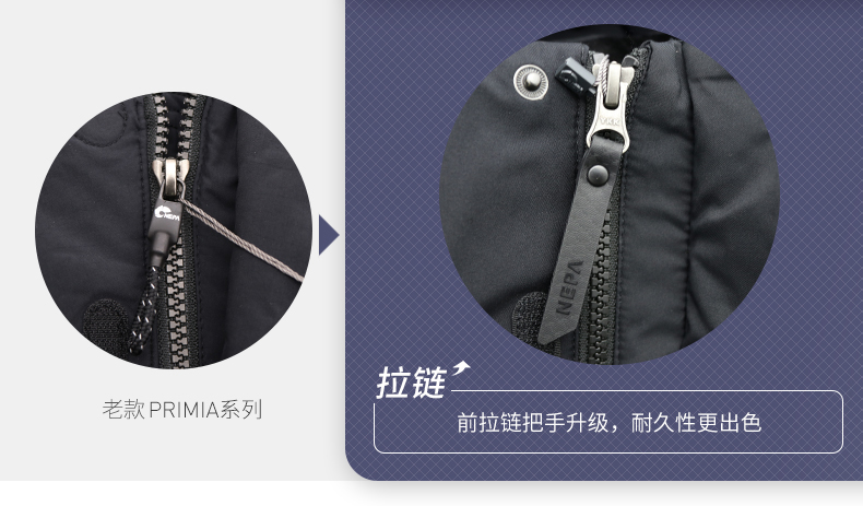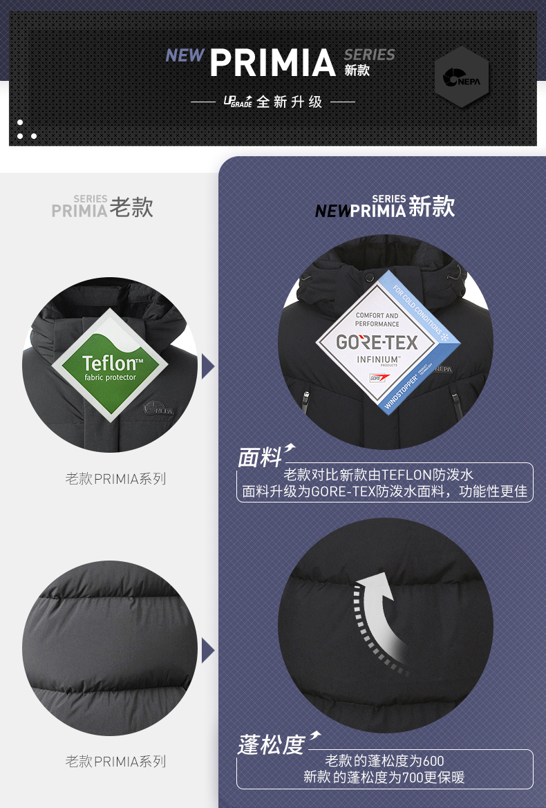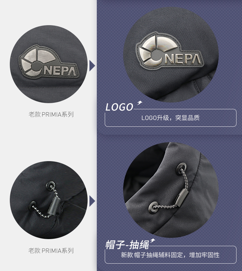 韩国NEPA耐葩,时尚户外休闲品牌,韩国国民女神全智贤代言,在羽绒服制作方面,不但款式做的比较时尚,在用料选择上更是使用了国际上顶级户外品牌使用的多种科技,兼具时尚与户外功能于一体。