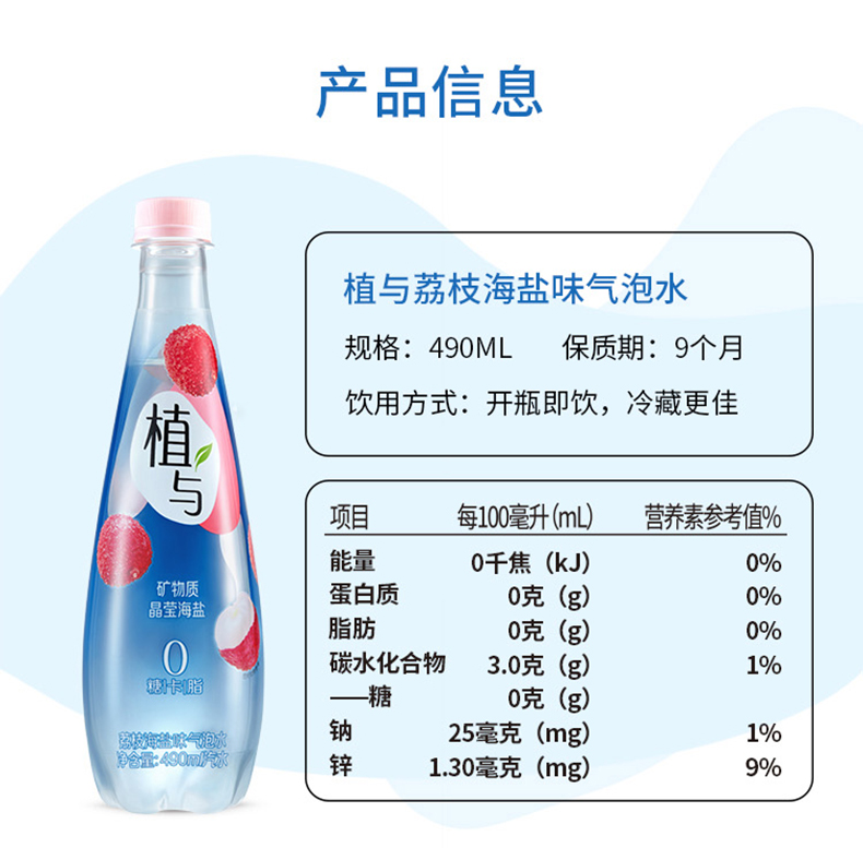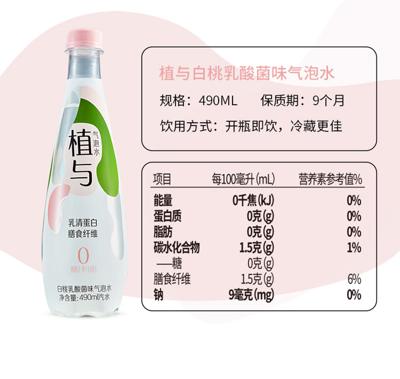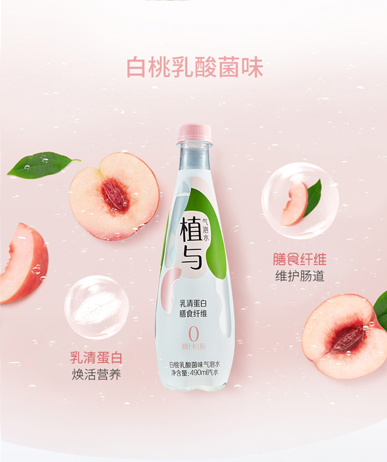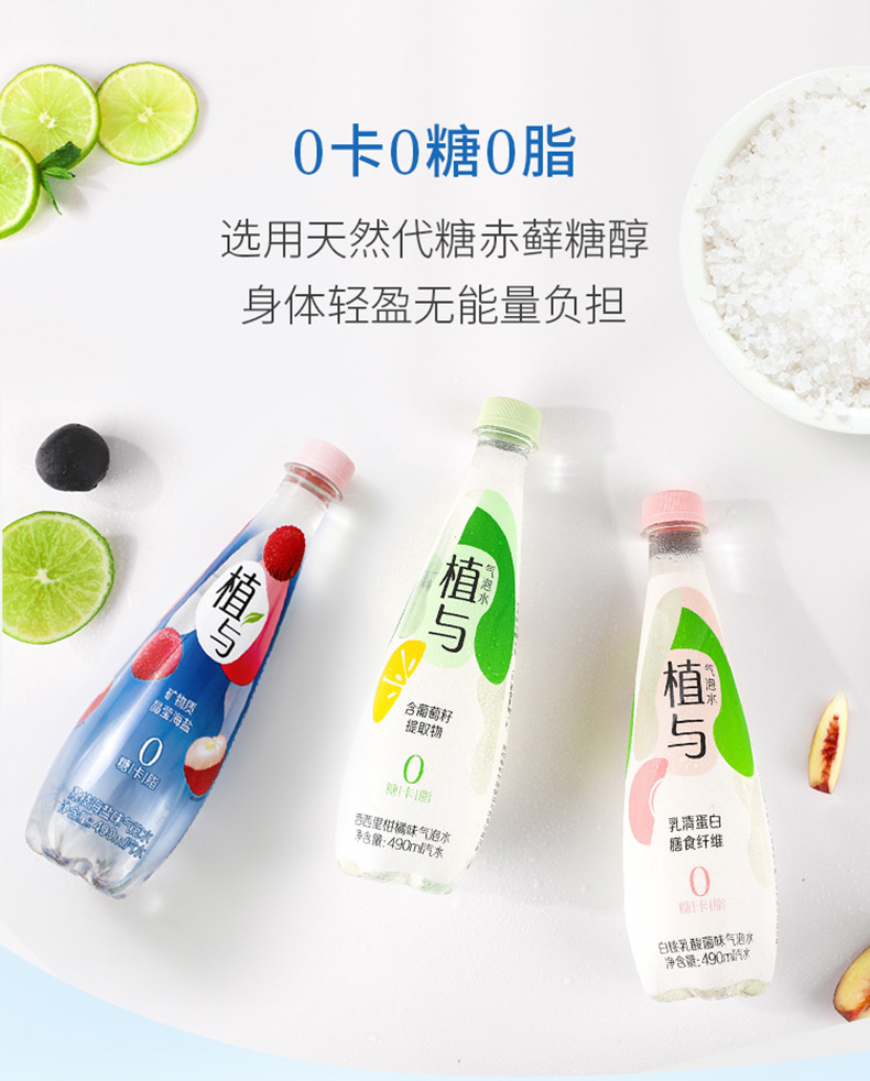白桃乳酸菌、西西里柑橘、海盐荔枝三种口味可选,分别添加新西兰进口乳源乳清蛋白,富含膳食纤维;葡萄籽提取物,富含花青素,添加矿物质-葡萄糖酸锌,营养较好吸收,选用代糖赤藓糖醇替代蔗糖,0糖0卡0脂无能量无负担、不伤牙齿,丰富气泡,口感激爽,好喝无负担。