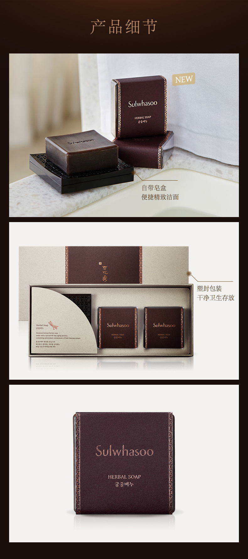 2010年雪花秀被韩国政府选定为赠送给出席G20首尔峰会各国第一夫人的官方礼物,而那个礼物套装中就含有这款宫中蜜皂。这不是普通的香皂,是植物韩方药材的手工皂,无刺激性,男女老少,连孕妇都可以放心使用。