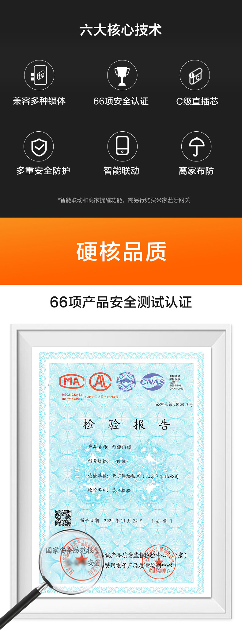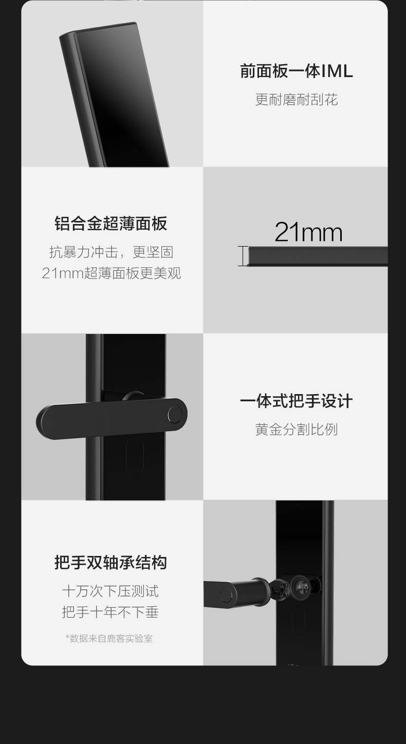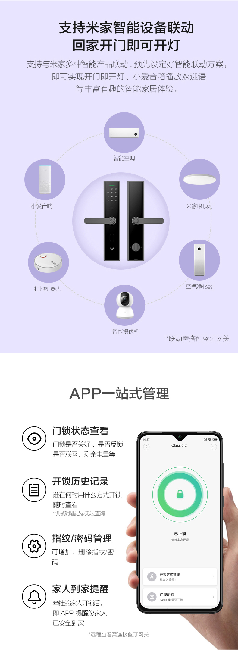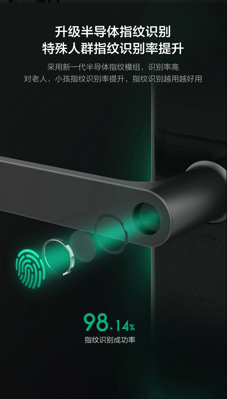 搭载小米之家安全芯片,AI黑科技管家,关门自动上锁,五重安全传感器,指纹识别模组升级,锁端信息加密保护,免费上门安装。