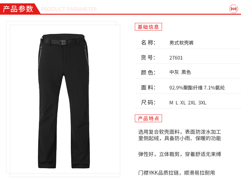 这款地球科学家软壳裤,使用92.9%聚酯+7.1%弹性氨纶的复合软壳面料,摸起来的手感柔软不是很硬,外层是梭织的软壳面料,可达97%防风,还经过防泼水处理。