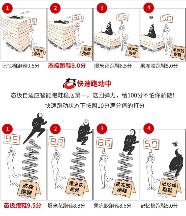态极的核心就是中底,而中底是使用一种类似于非牛顿流体的物质发泡制成,能做到“遇硬则硬,遇软则软”的效果,在慢走状态下的柔软度微微次于加厚的记忆棉材质,在快速跑动中能获得比Boost颗粒更大的回弹感觉,在发布会上还上演了一幕“铅球变篮球”的好戏。