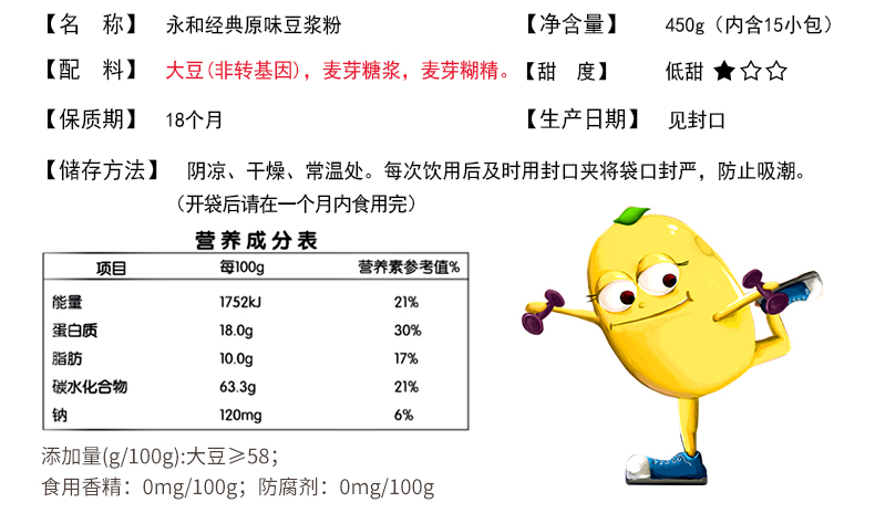 可选经典原味、无添加蔗糖、香甜三口味。一袋内含15小包,共450g。永和源自于1982年,专注豆浆30余年,非转基因大豆,纯植物蛋白,粉质细腻,不摇也能很快融化~领券链接点此