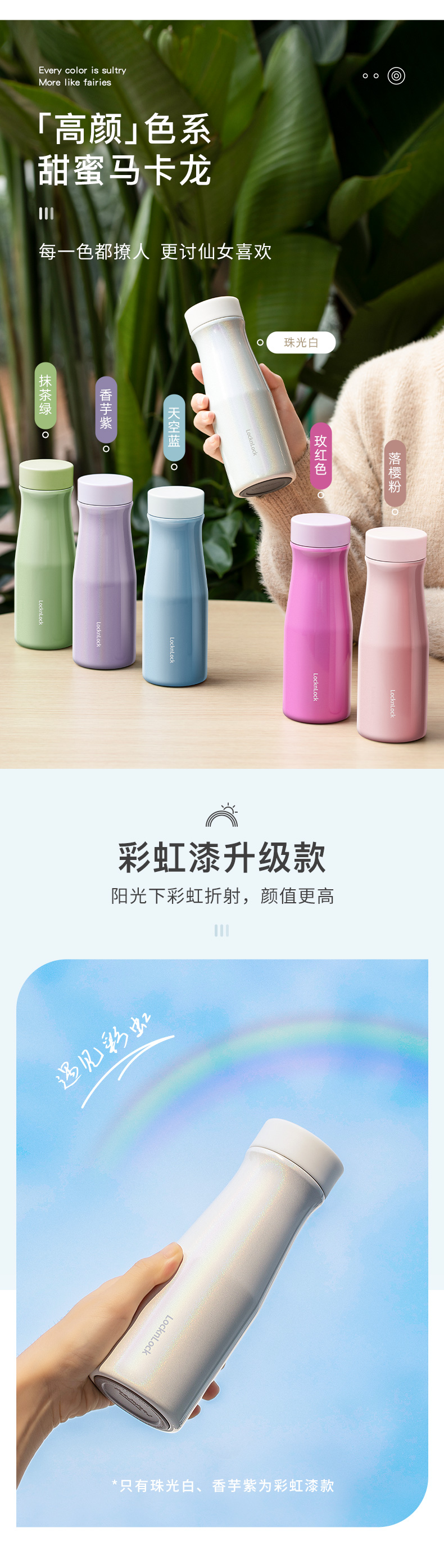 这款LOCK&LOCK 乐扣乐扣 彩虹不锈钢保温杯,容量: 400ml,彩虹漆杯身(仅珠光白、香芋紫,其余为亮面纯色),304不锈钢杯身,外胆镀铜层,双层真空层,304不锈钢内胆层,内置双重硅胶密封圈,内置茶网,茶水分离,可拆卸结构,方便清洗,防滑硅胶低垫,减少噪音。领券链接点此