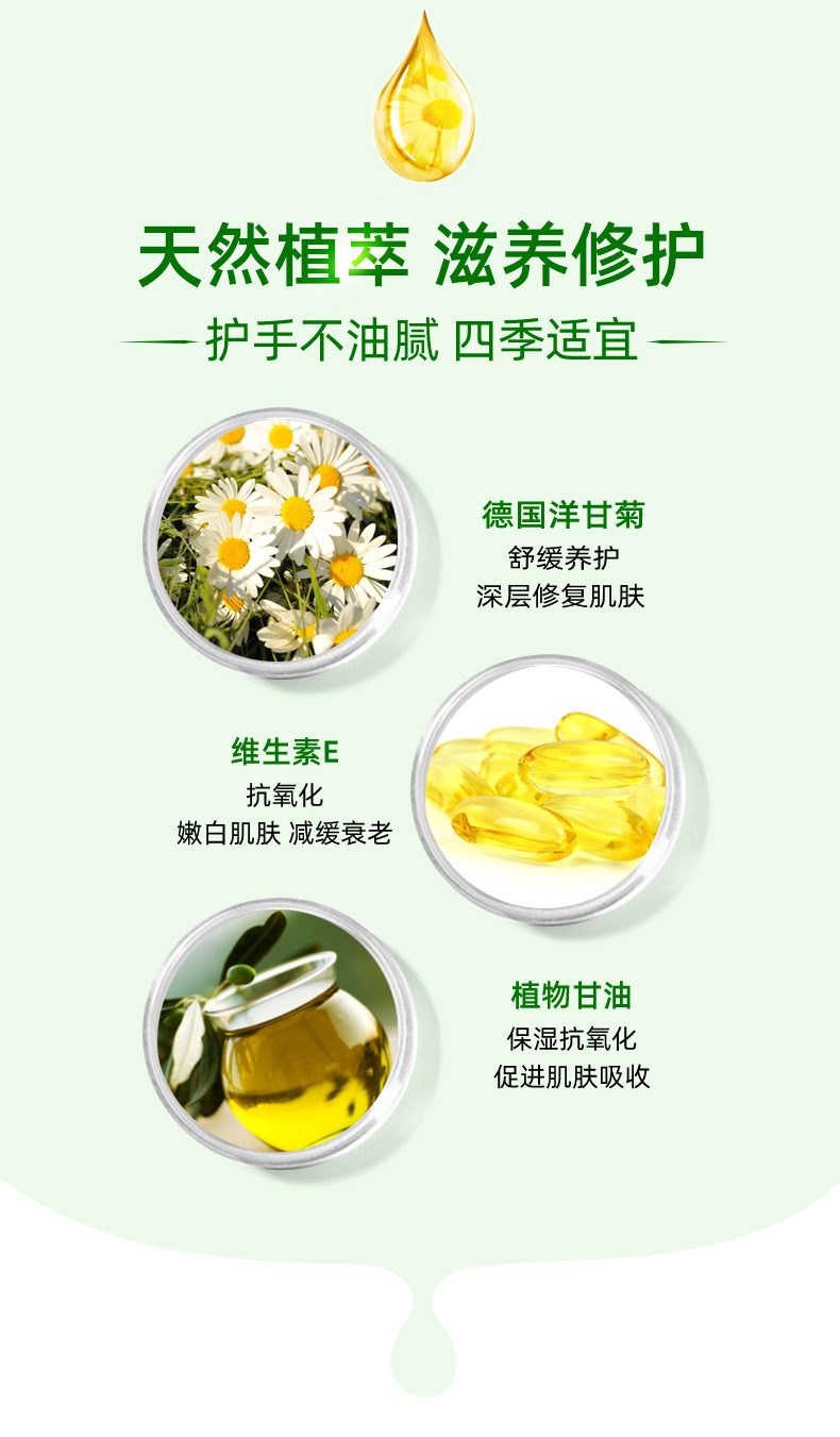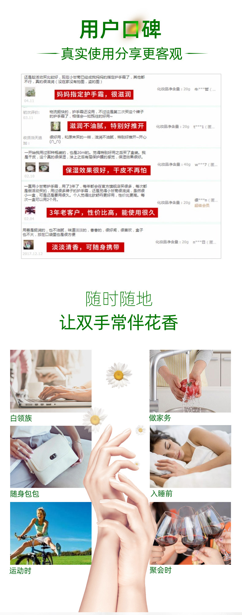 这款小甘菊 补水滋润手足霜,德国原装进口,采用德国洋甘菊萃取精华和荷荷巴油,能软化角质深入修护肌肤,补水持久保湿,洋甘菊精华能舒缓秋冬敏感肌。