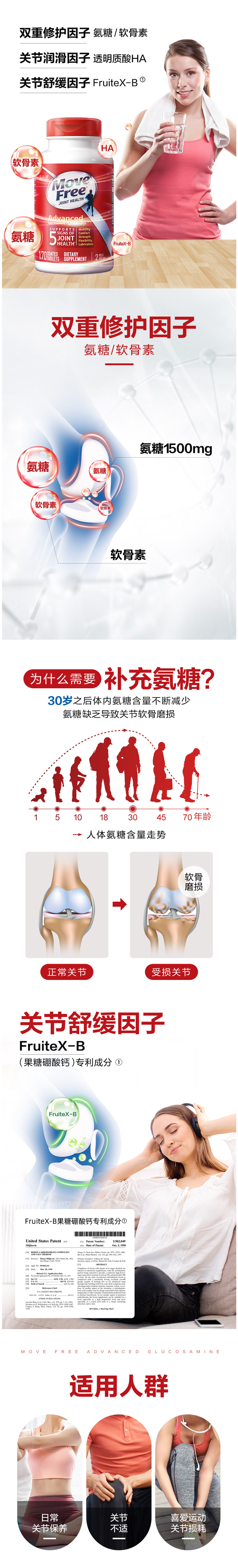 Move Free维骨力,是美国关节保健品市场上的第二大品牌,母品牌Schiff有近80年历史。Move Free最大的特点,是针对骨关节保健盲区“软骨”进行营养补充,核心营养素是“氨基葡萄糖”,也叫氨糖,美国有专门的医疗机构论证过氨糖的有效性。