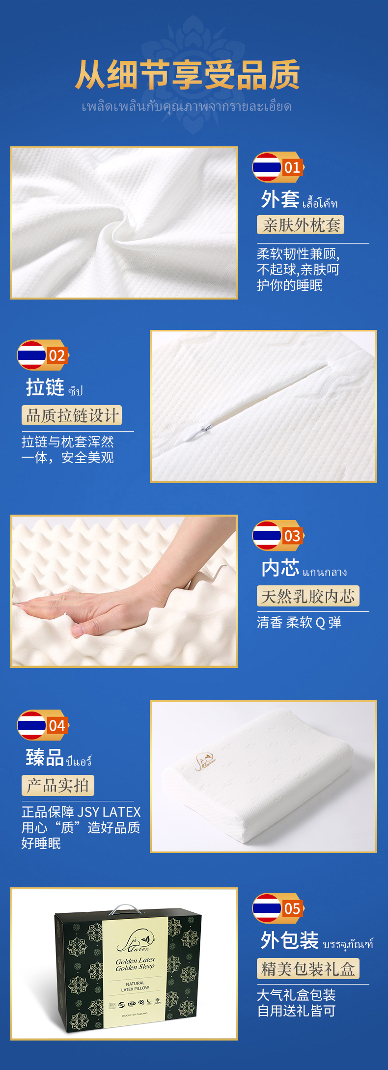 这款JSY LATEX天然乳胶枕,泰国原装进口,纯天然乳胶含量达94%+,采用物理发泡工艺,无其他添加,天然无刺激,但是在成品上会出现一些自然的瑕疵,边缘线无法做到完全的平滑,但这也成为分辨是否是乳胶枕的一大标志。