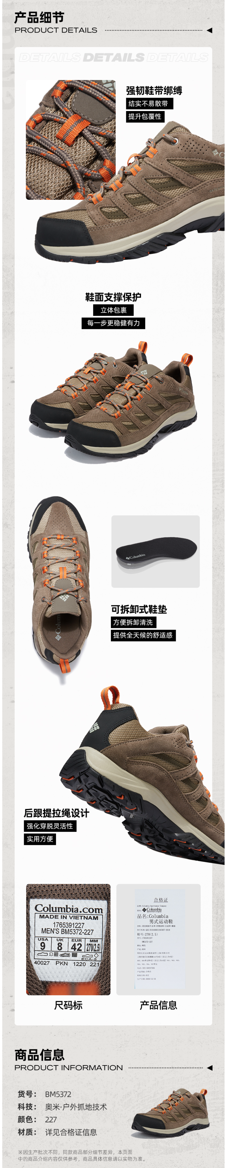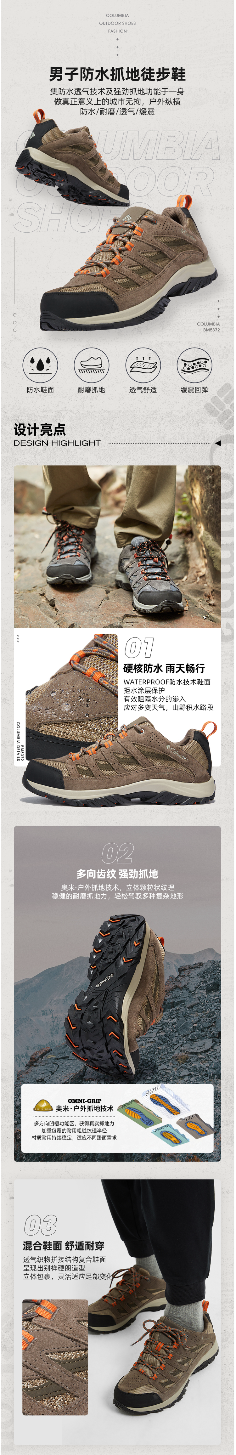 这款哥伦比亚Columbia 男防水抓地登山徒步鞋,是2021年秋冬新品,集防水透气及强劲抓地功能于一身,做到防水、耐磨、透气、缓震,城市和户外都能穿。