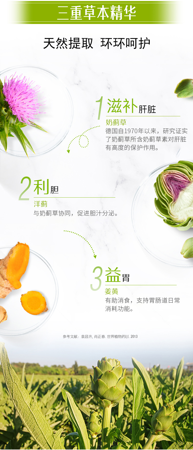 这款护肝片,选用三大传统草本植物为原料:奶蓟草,朝鲜蓟,姜黄。帮助促进胆汁分泌,抵抗对肝脏不利物质,帮助维持肝脏健康,分解脂肪,对抗自由基。有解酒醒酒,排毒养颜抗衰老,缓解消化不良的功效。规格:28.6mg*120粒 每日2粒 可吃 2个月