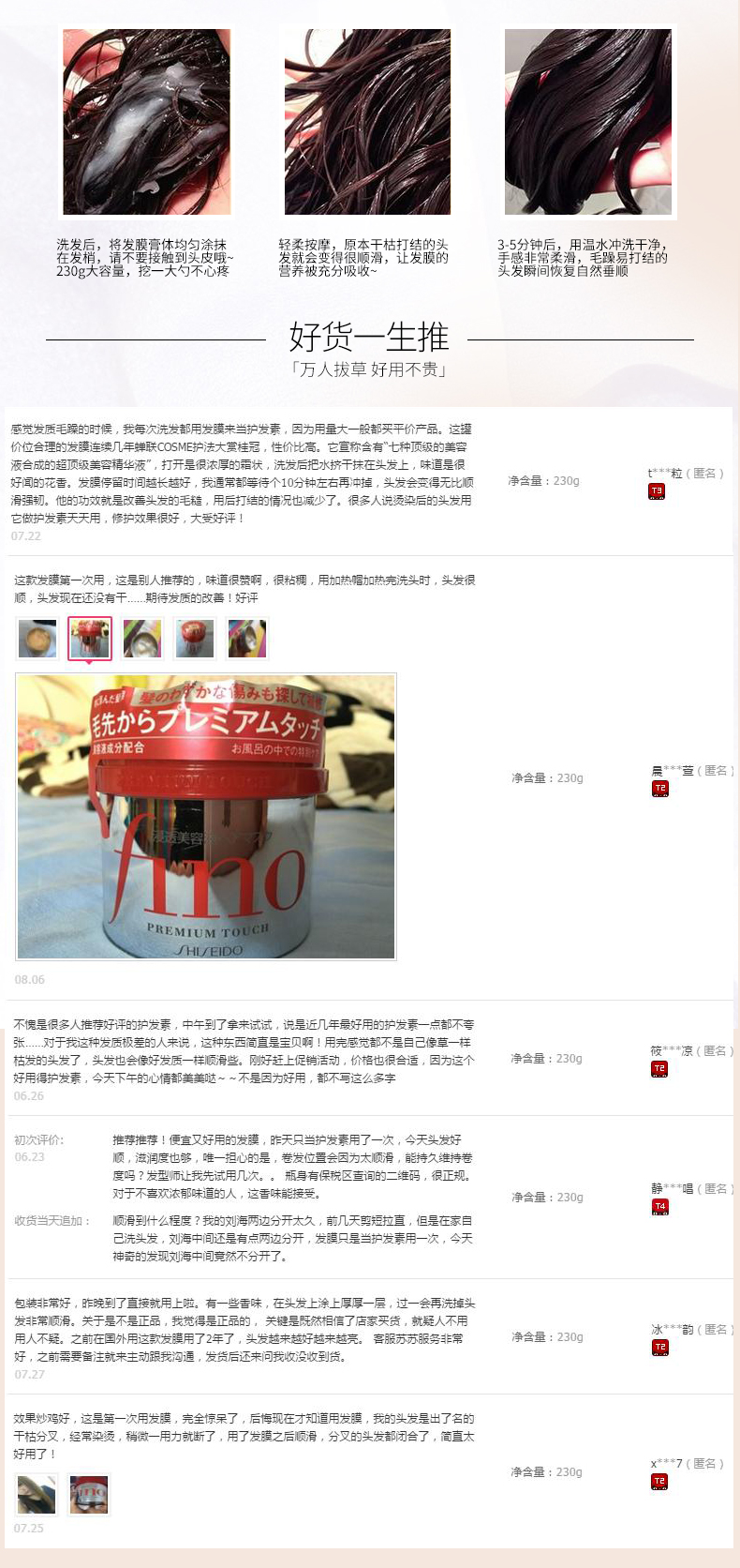 日本资生堂旗下最出名的一款发膜,曾经连续2年等日本COSME大赏榜单的第一名,适合任何发质,特别是烫染受损发质。编辑现在自用的款,平均一周两次,用过之后头发变得手感软滑,一点也不毛躁,而且留香持久,每天都香喷喷。