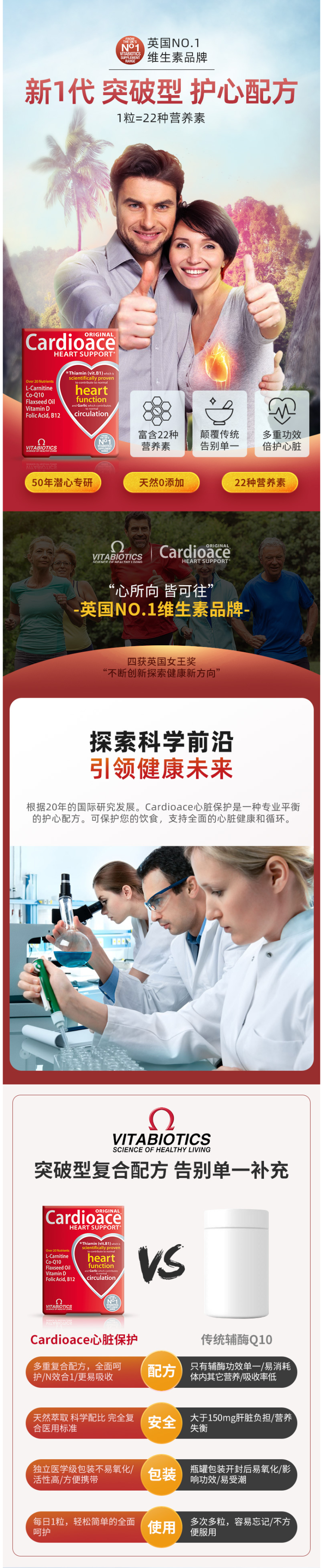 这款维百莱旗下Cardioace辅酶Q10,英国原装进口,使用复合配方,全方面呵护心脏。主要成分是辅酶Q10、植物亚麻籽油、大蒜素、镁、硫胺素、维生素B6、维生素B12、叶酸等22种营养元素,除了呵护心脏,同时呵护全身健康。