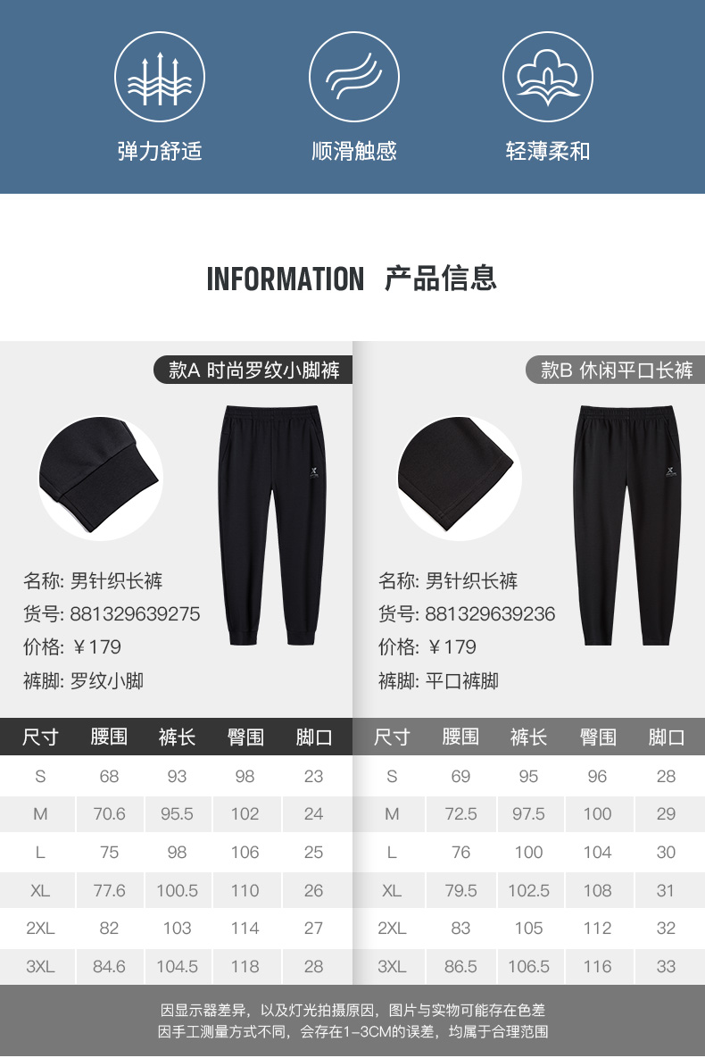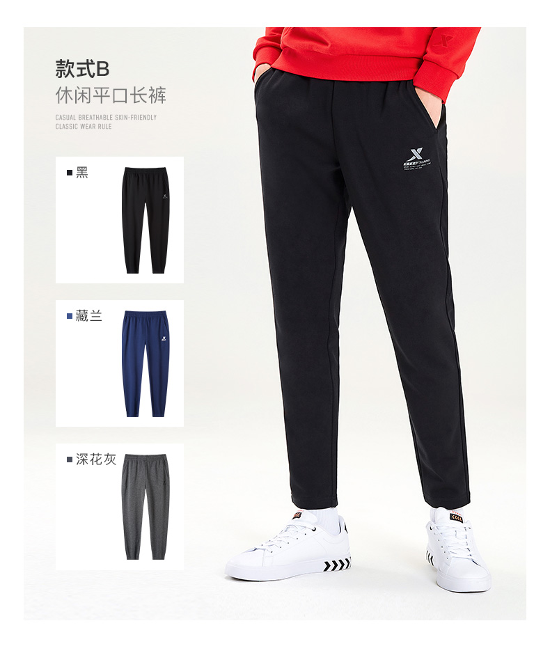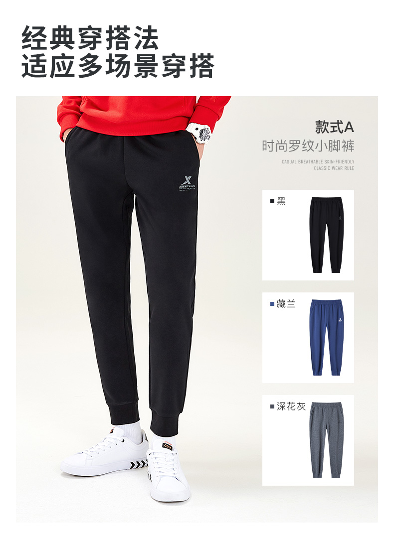 多种款式和颜色可选,有针织、梭织、收脚和直筒可选,国内运动品牌整体上虽不如耐克、阿迪科技多,但这种基础款上穿起来没差,性价比高。