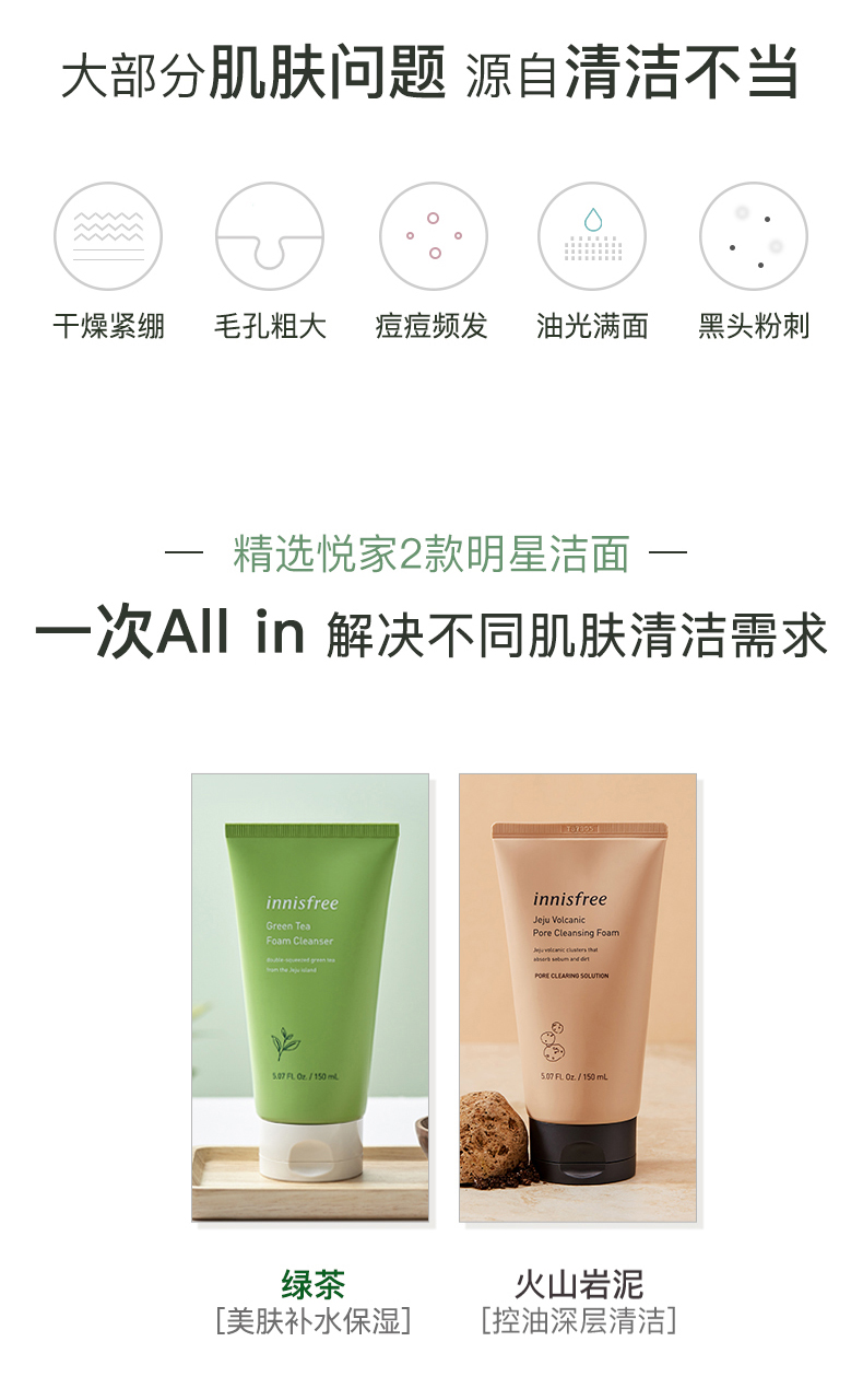 悦诗风吟innisfree火山岩泥毛孔清洁洗颜乳,是一款控油型的洁面乳,富含济州火山岩泥原料,能有效吸附皮脂污垢;丰富稠密的泡沫,帮助干净清洁面部妆容残留物及污垢,洗完后肌肤水润不易紧绷。