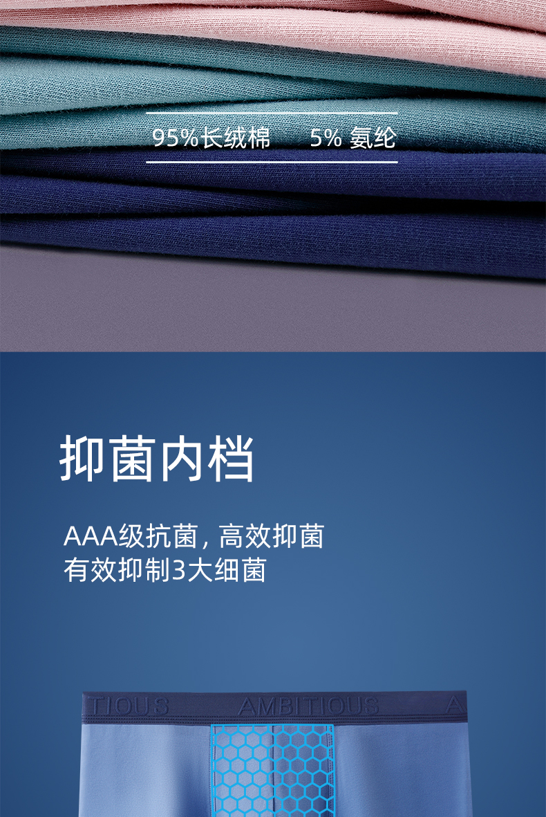 这款内裤采用95%长绒棉+氨纶混纺面料,上身柔软细腻,透气性好,不容易起球,一片式无侧缝剪裁,更少的缝合线、更高的成本带来更舒适的体验。360度舒适贴合,弹力耐穿,3D剪裁U凸囊袋内裆,更大透气自由空间。走线工整不摩擦皮肤,更耐磨耐穿。领券链接点此