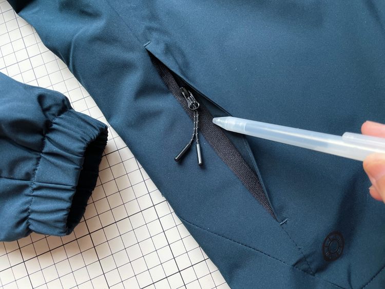 在细节上:1、这款夹克的袖子,在抓绒层表面增加了光滑内衬,方便穿脱。2、帽子可拆卸3、拉链是压胶防水拉链